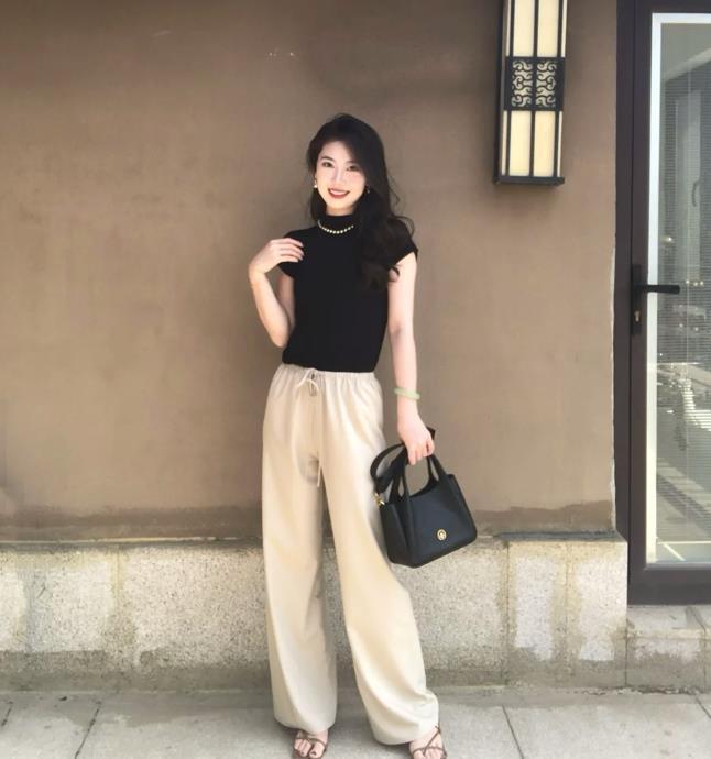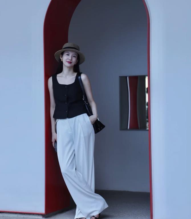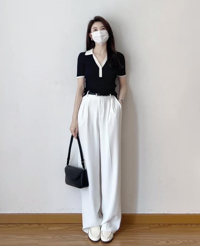 黑和白的配色穿搭,真的有種很高級的極簡風氛圍感,梨形身材姐妹也能輕鬆駕馭,白色闊腿褲,對腿型有着極佳的包容性,也能讓你穿得舒適自在。雖然都是很簡單的基礎款,但也能穿得非常高級。