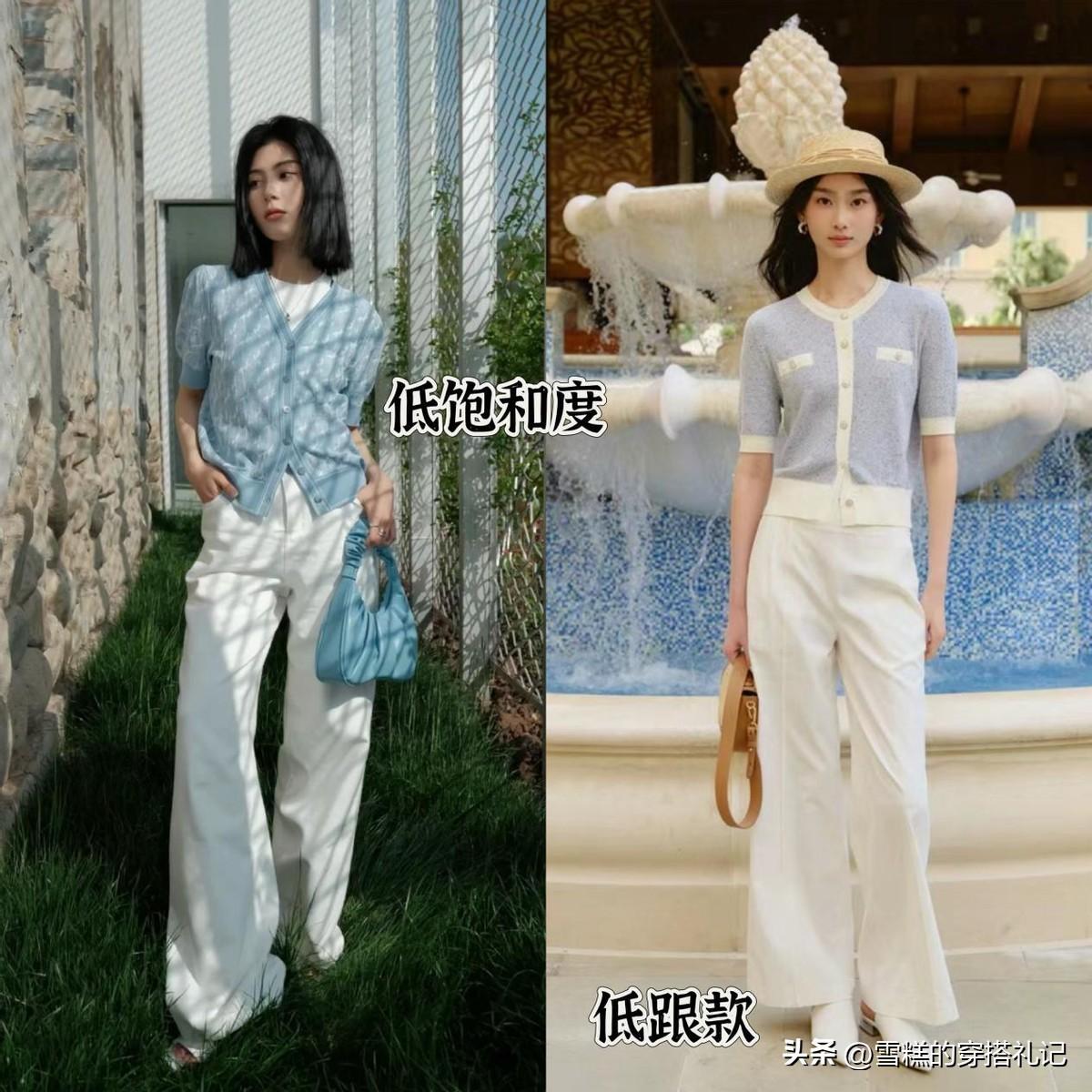 實操1.奶奶衫+白色闊腿褲+低跟鞋