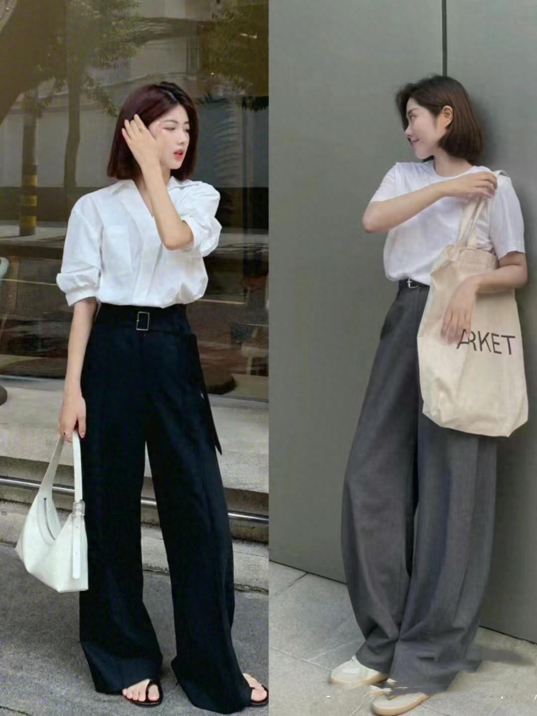 修身一點的圍裹式上衣,勾勒出腰身的輕盈與纖細,看似簡約卻又很提氣質。配寬鬆的闊腿褲,同樣捏褶的設計包容性更強。夏天裏的捏褶闊腿褲與半身裙,同樣具有遮瑕力。