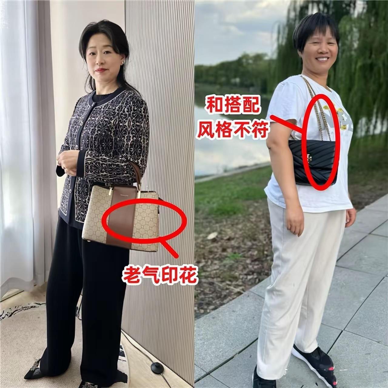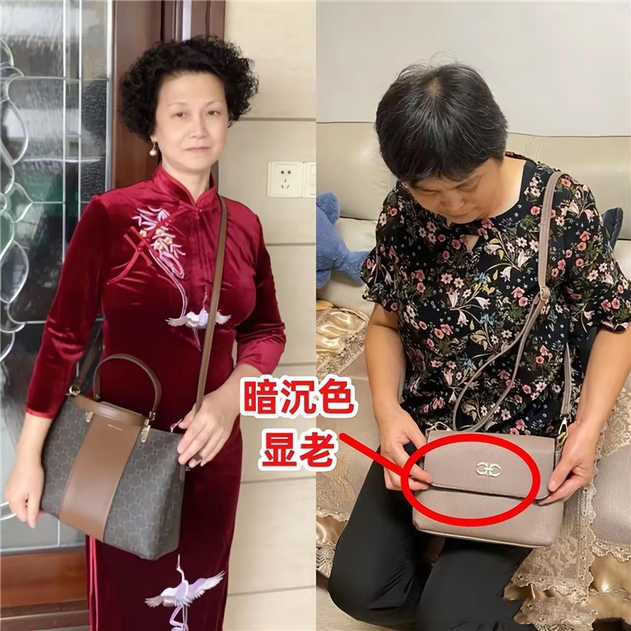 其實真的沒有必要去強調自己上了年紀,這種顏色太暗沉的包包、背起來就自帶老氣感。不用說自己60+,也已經寫到了臉上,真的不推薦大家繼續背。