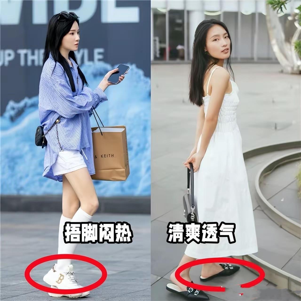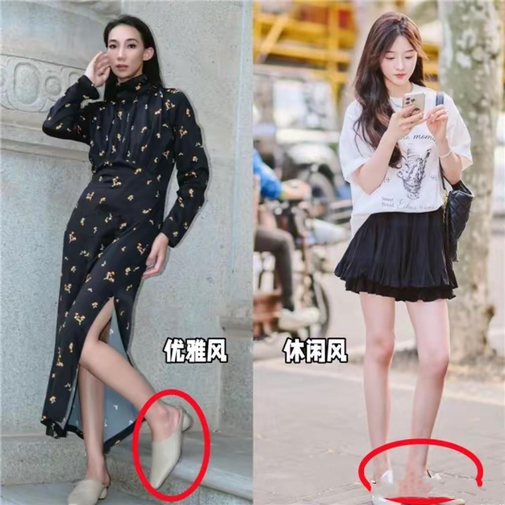 建議大家適當的露出腳背,露腳背的穿法更加輕便洋氣,在夏天裏也不會覺得悶熱。主要是穆勒鞋露出腳背,才顯的更加輕盈、也格外的高級。