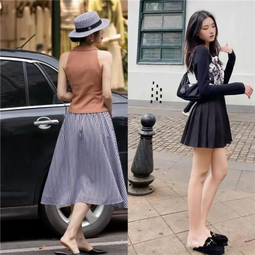 不管是明亮的銀白色、還是高級的深黑色,搭配淺口設計、穆勒鞋穿起來都更加舒適清爽一些。小個子女生,配過膝長裙來穿,拉伸腿長更加洋氣,讓穆勒鞋的穿搭更爲時尚,