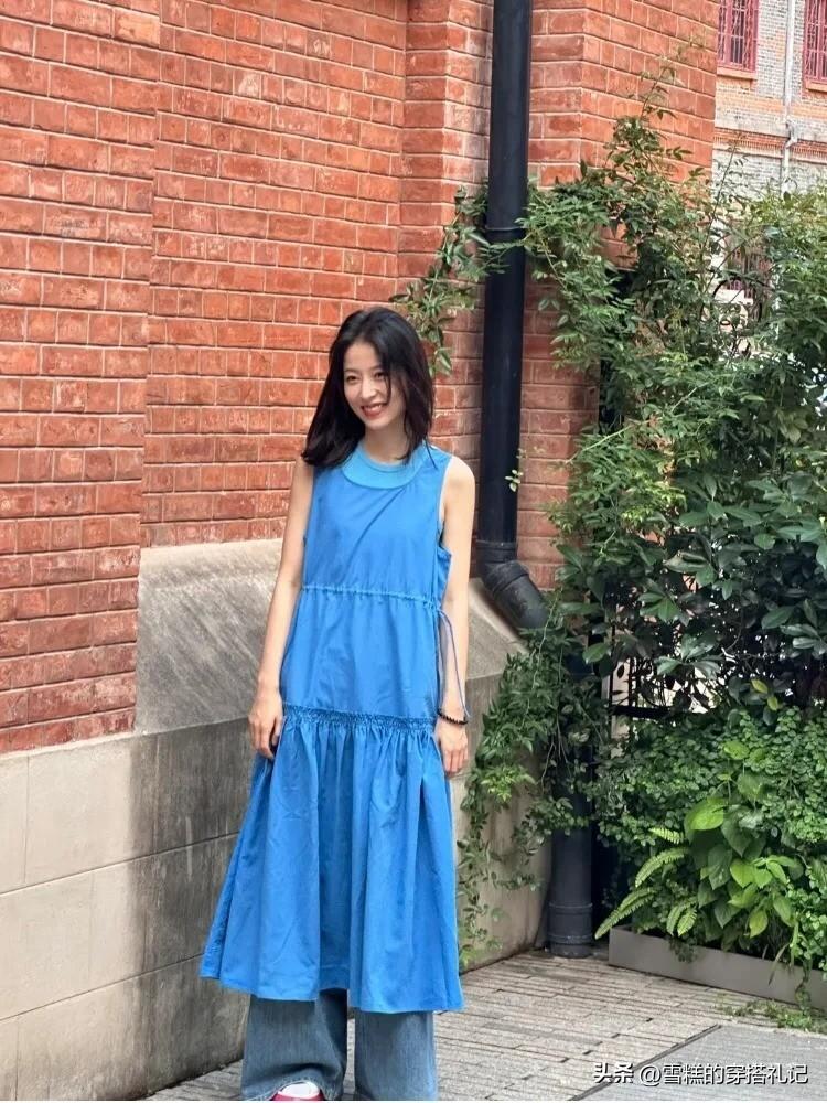 合一件由克萊因藍色調作爲主打的背心裙,下面配上紅白相間的運動鞋,很難不讓人產生一種混搭又個性感十足的氣場感。