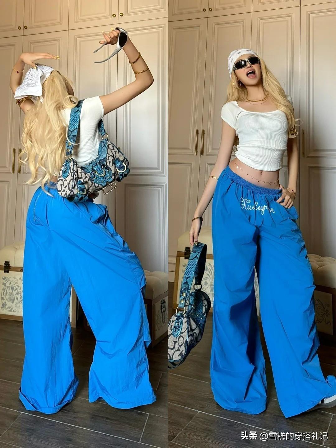 克萊因藍色作爲下裝所釋放出來的醒目感很強,所以建議大家在搭配的過程裏,上衣色調不妨選擇的稍微經典和百搭一些。