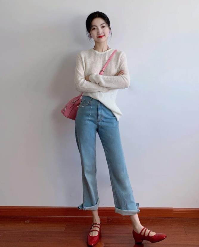 春夏季節,牛仔褲+瑪麗珍單鞋這一對組合都是很合適的,也具有比較高的實用性,褲子的款式和版型,根據自己的身材情況選擇即可,至於鞋子的顏色,也是根據自己的喜好選擇,想要讓自己的穿搭看起來更吸晴洋氣一些,入手亮色的款就行。