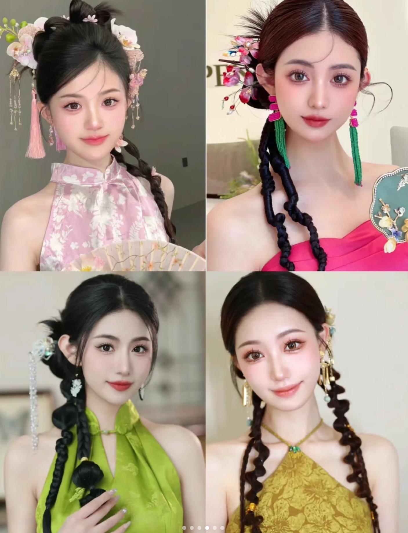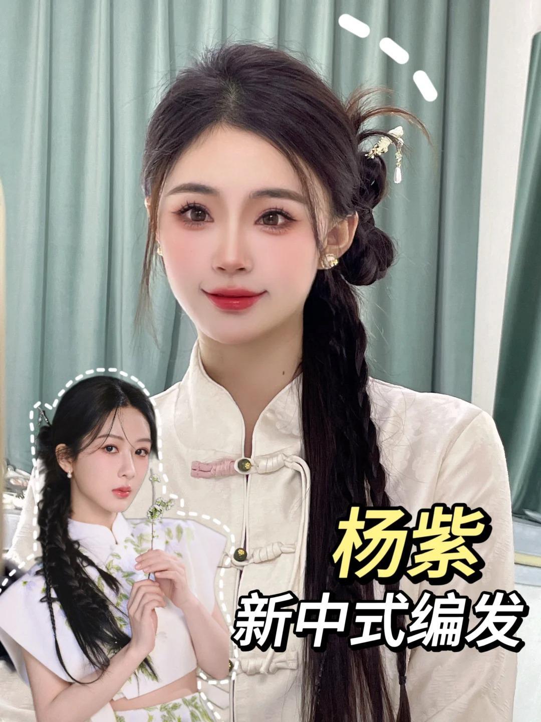 側邊麻花辮其實和各種新中式都很搭,馬面裙、新中式連衣裙、國風套裝,簡單好上手。