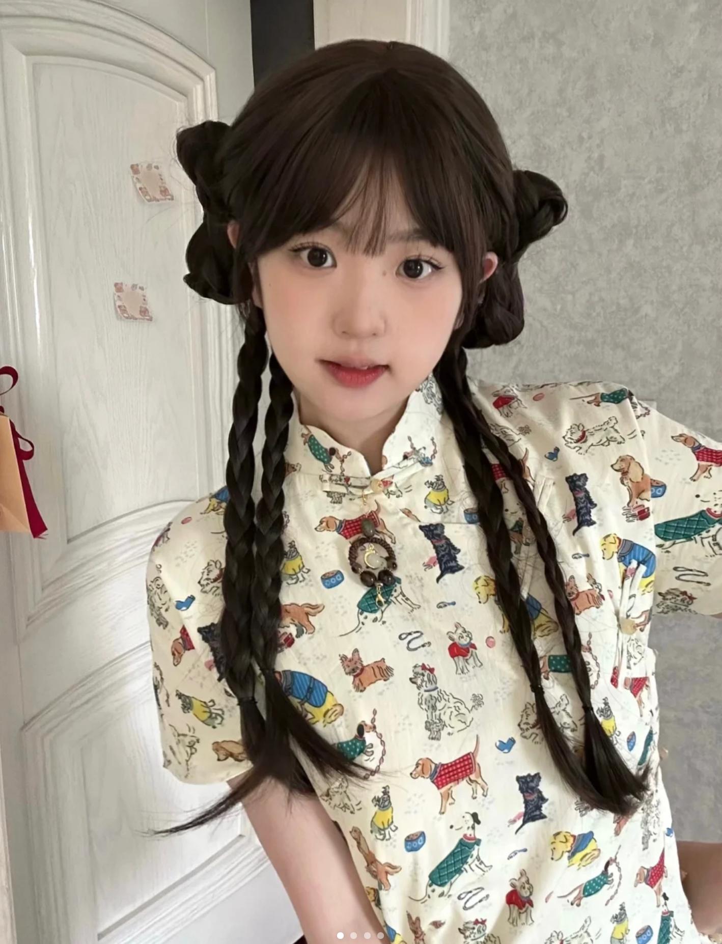用雙丸子頭搭配上小辮子,少女感十足,加上可愛的髮夾髮簪,打造出既有古典美感又不失時尚感的髮型。