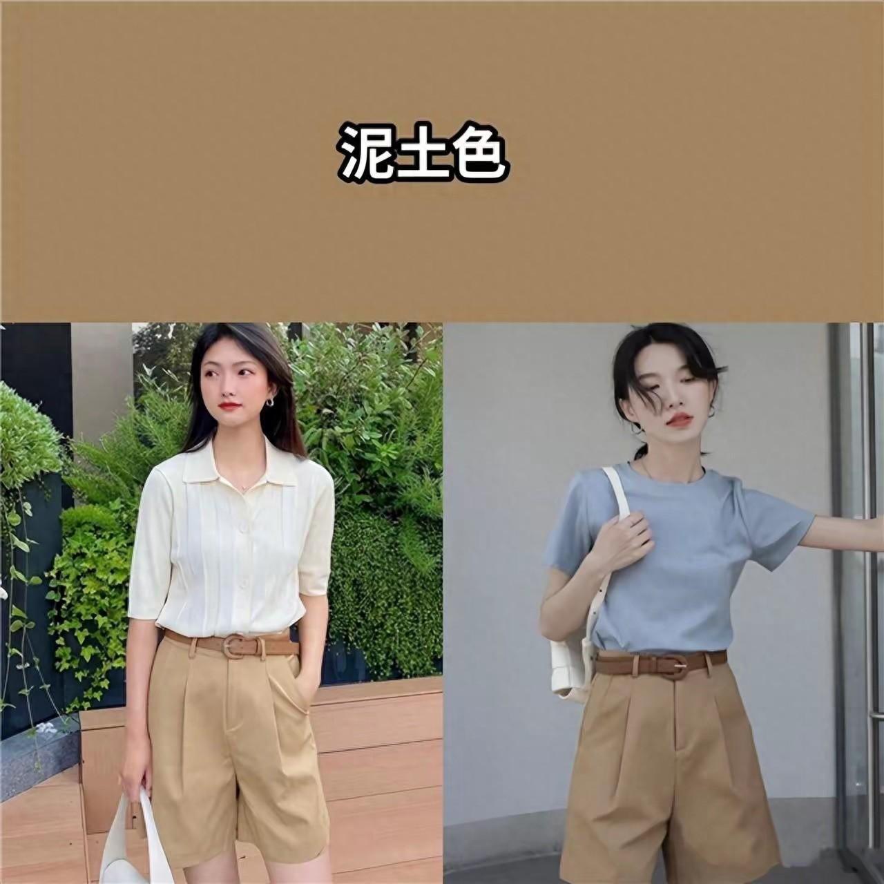 泥褲是一個比較洋氣的名字,其實說白了就是卡其色的褲子。這種色系與泥土色比較相近,屬於自帶酷感的中性風色彩,與我們膚色也比較相近,夏天穿不會有斷層感。