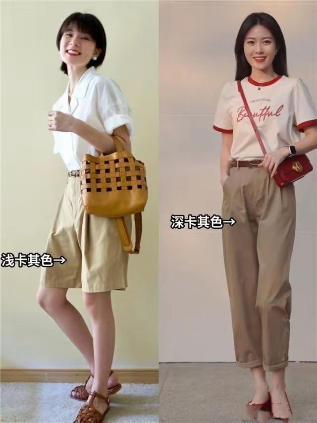 這個夏天如果你也喜歡自帶高級感的卡其色褲子,那麼在上衣的搭配上、可以選擇清新的淺色上衣。