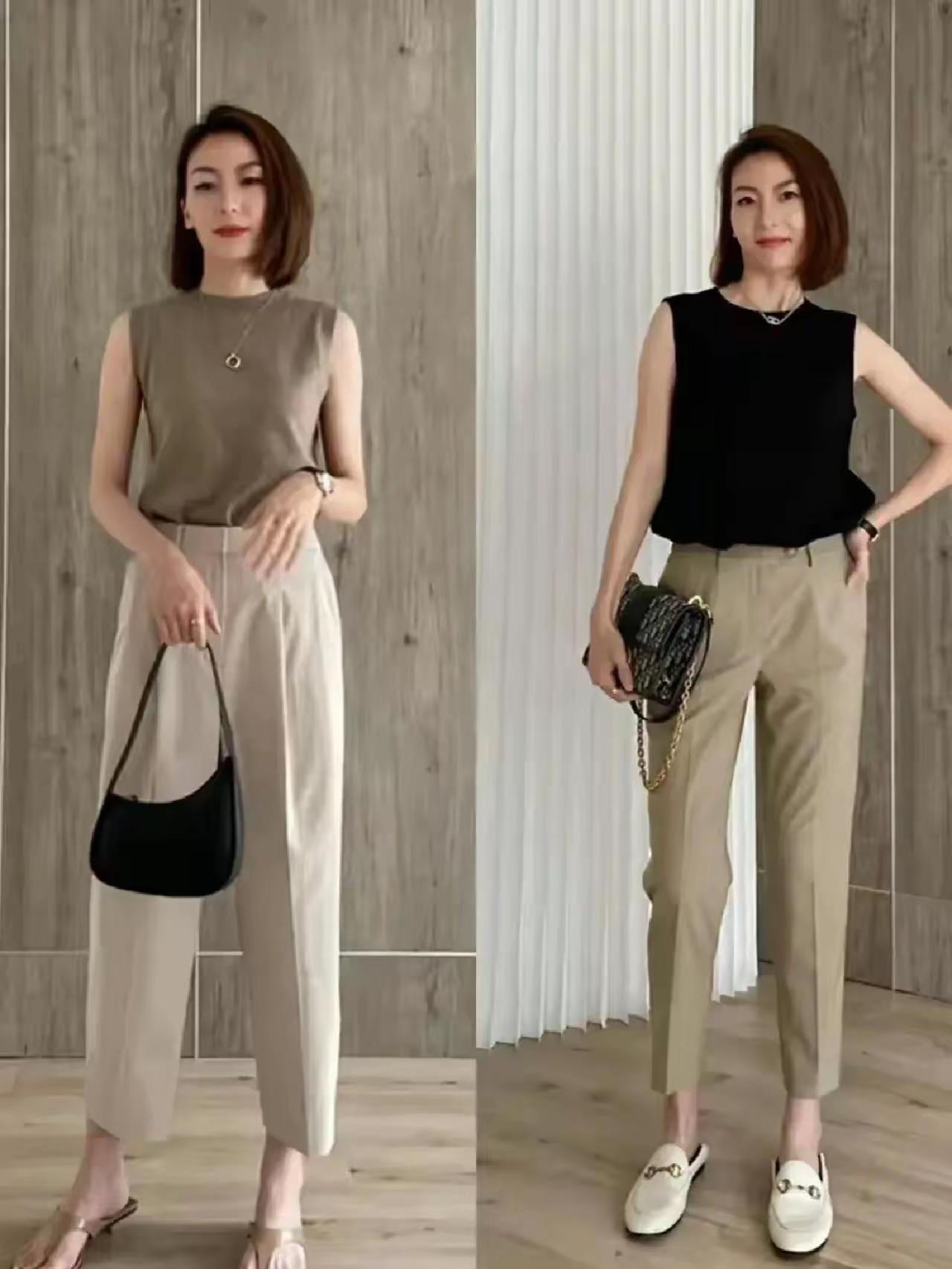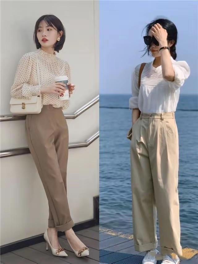 泥褲具體選擇哪一種長度,還是要參考自己的身高、以及腿型。如果你的腳踝比較纖細,更建議大家選擇九分褲的長度。對於小個子而言,九分的卡其色褲子、也更加舒適顯高。