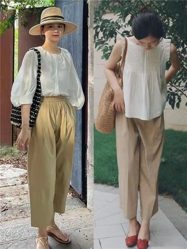 亞麻、棉麻、桑蠶絲等面料的,都是純天然的成分、親膚、吸汗、透氣,日常的穿搭中,面料輕柔的棉麻褲子,穿起來舒適度更強。