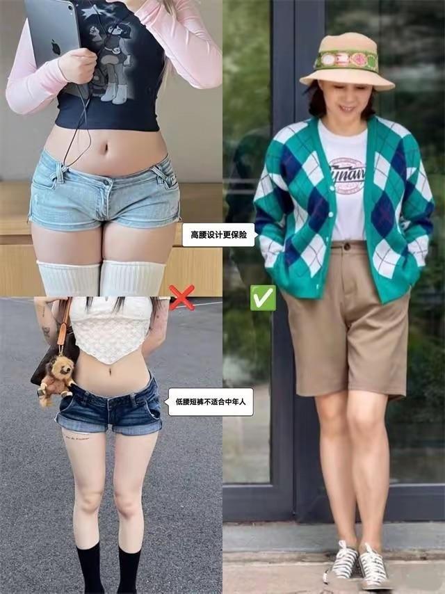 這種低腰褲,並不適合上了年紀的女人。五六十歲的女人,還是選擇高腰短褲更加實用。抬高腰線、包容腹部、下肢的厚重,簡單清爽又減齡。