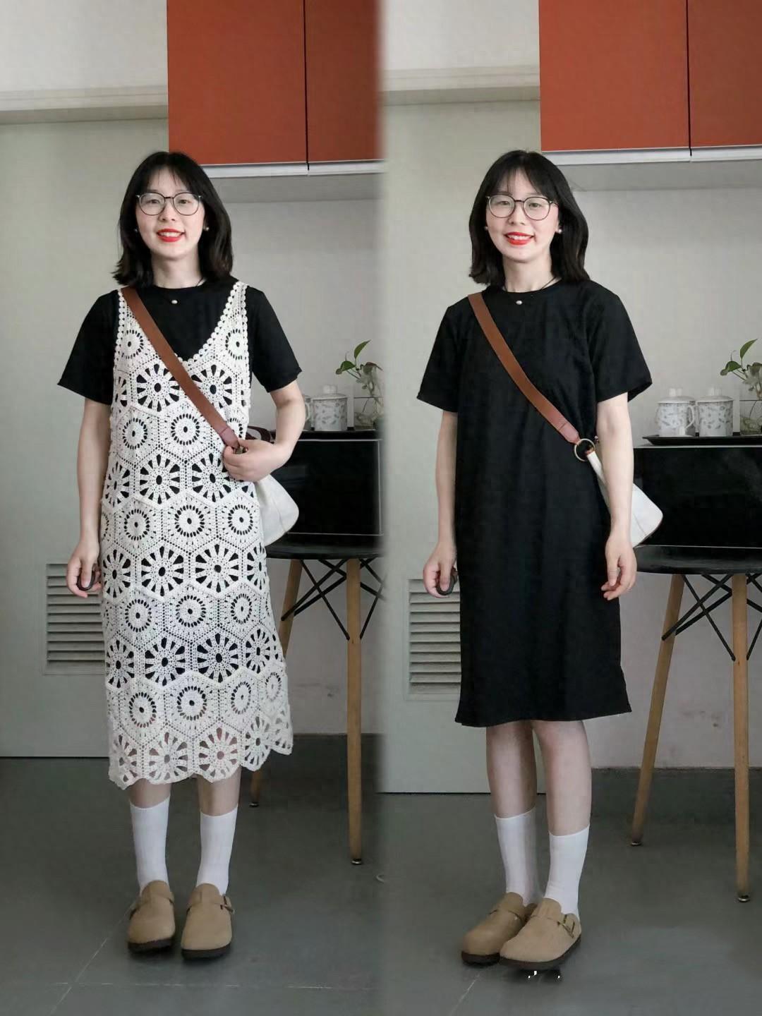 以基礎款爲切入點,就會讓我們的穿搭變得更加簡單低調起來。舉個例子、簡單的黑色H型T恤裙,如果覺得單穿乏味,疊搭針織背心裙、就瞬間洋氣了許多。
