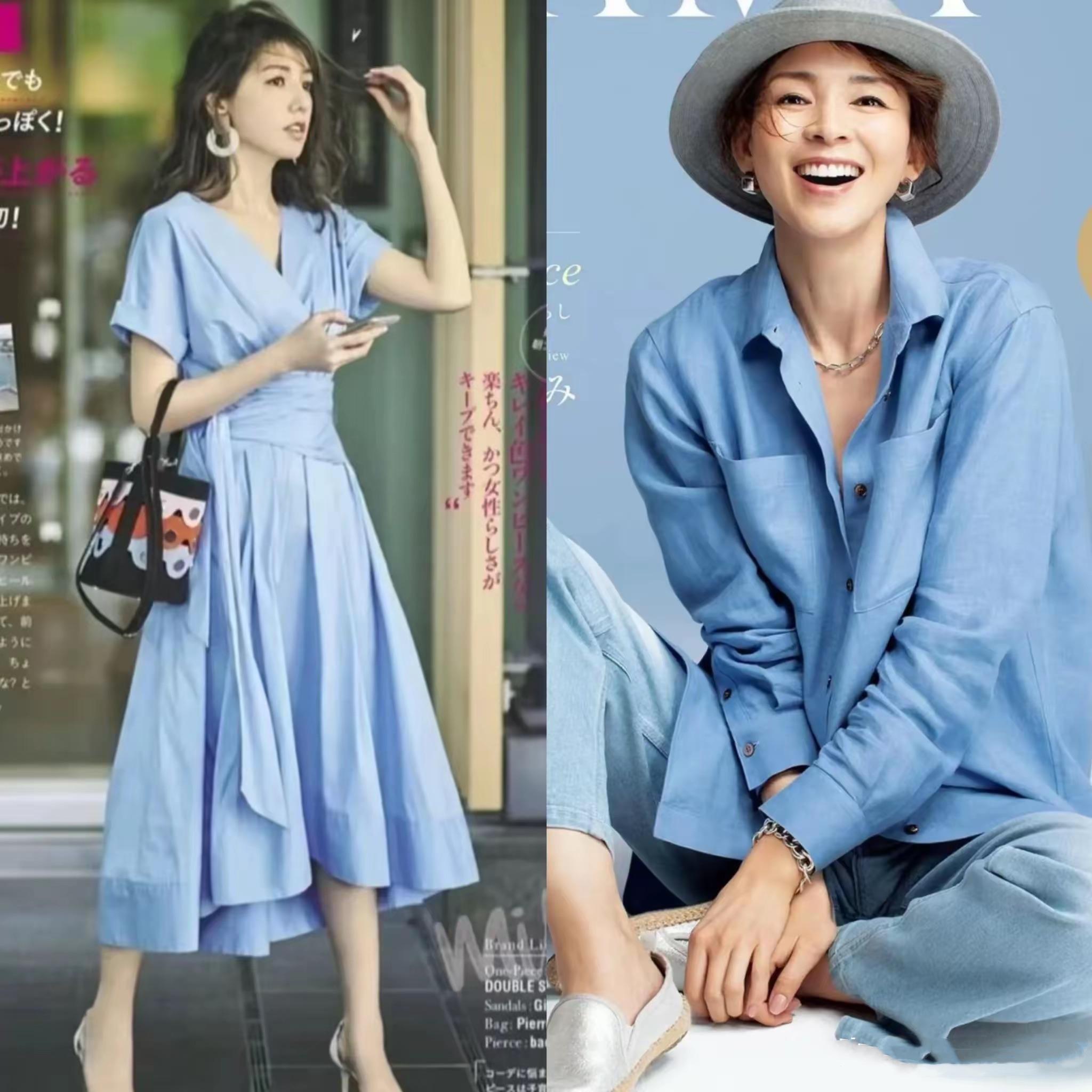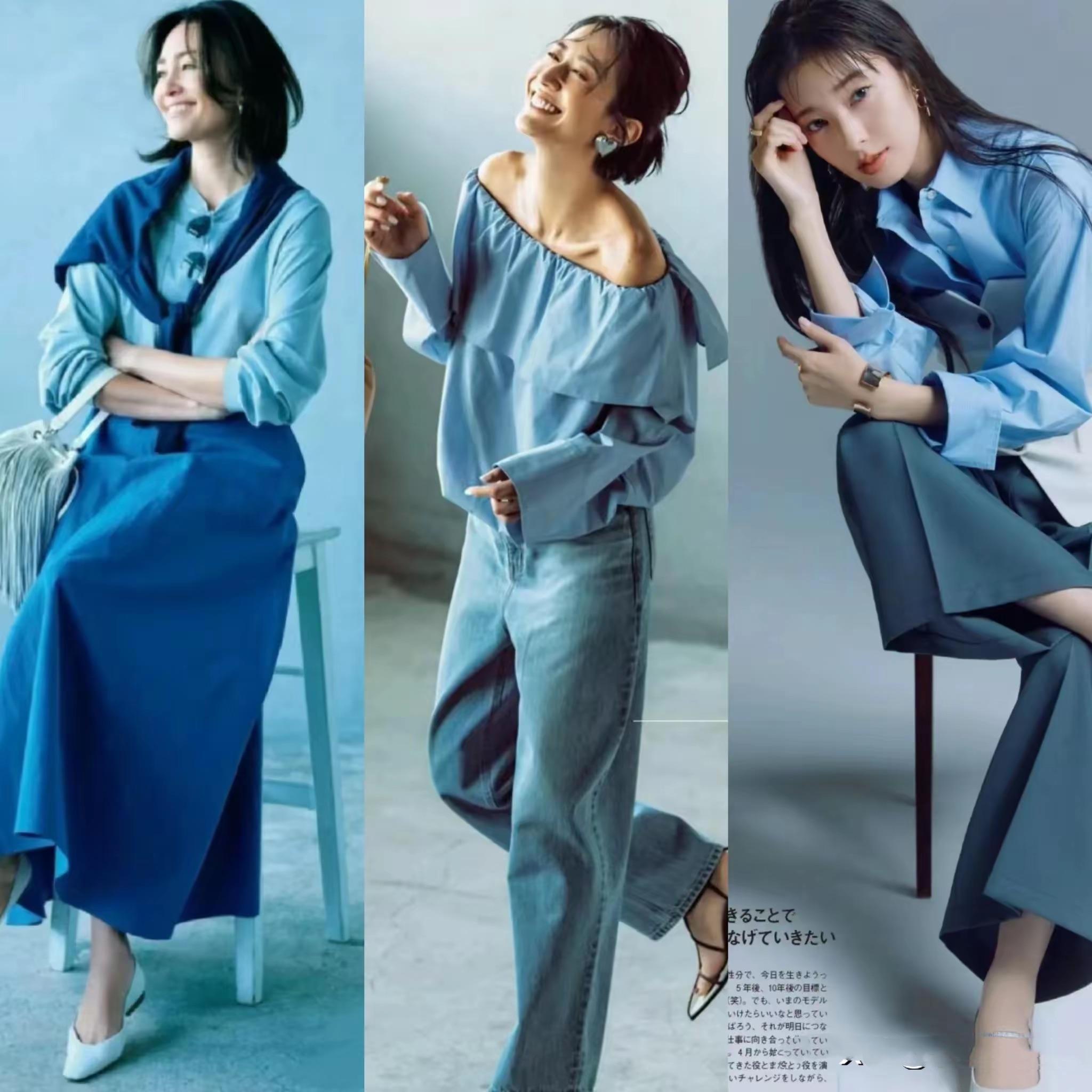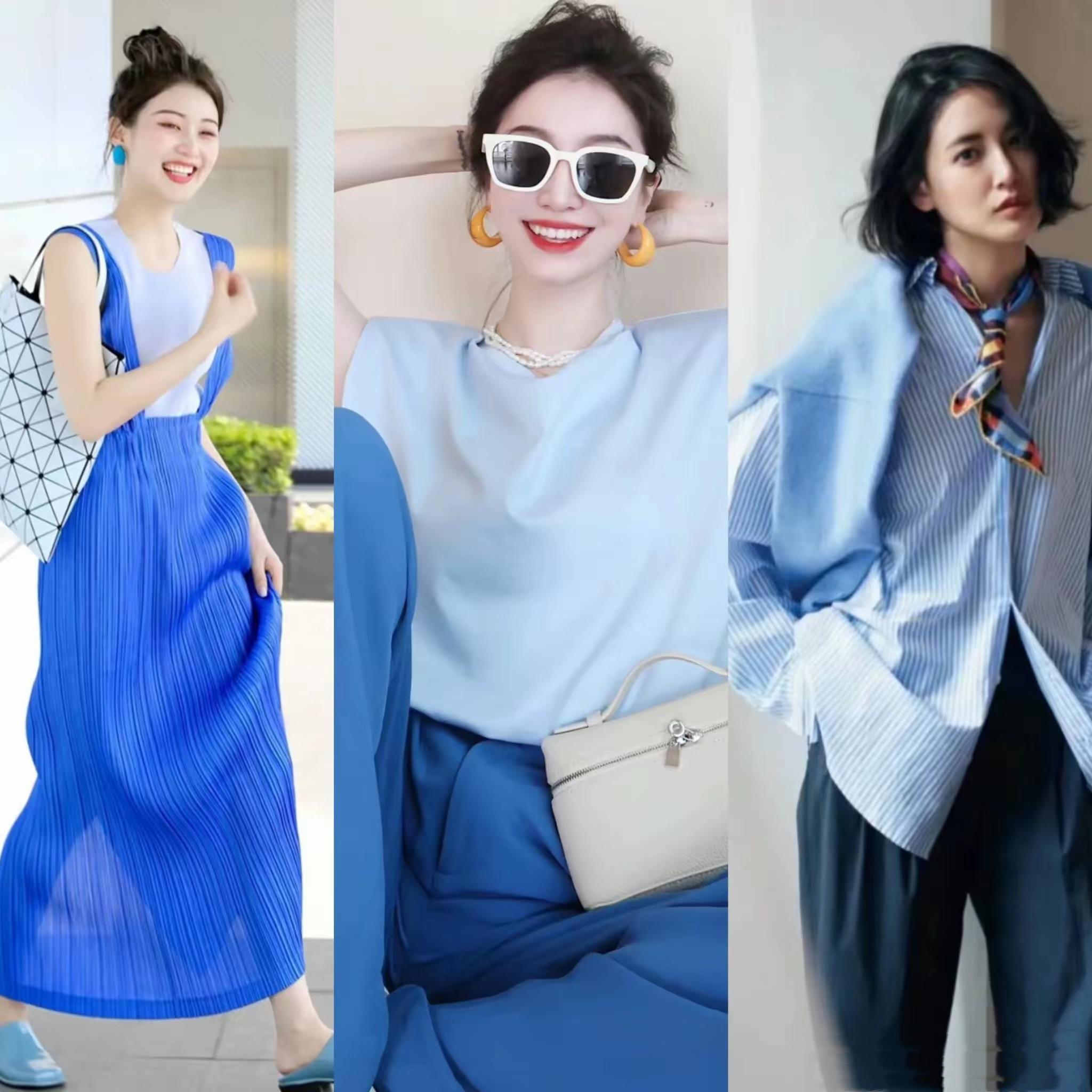 乾淨清冷的藍色系,不僅適合日常、休閒、通勤,就是獨家穿着也很愜意。這種藍色系的襯衫、或者蕾絲裙、醋酸裙,度假穿着也很洋氣。
