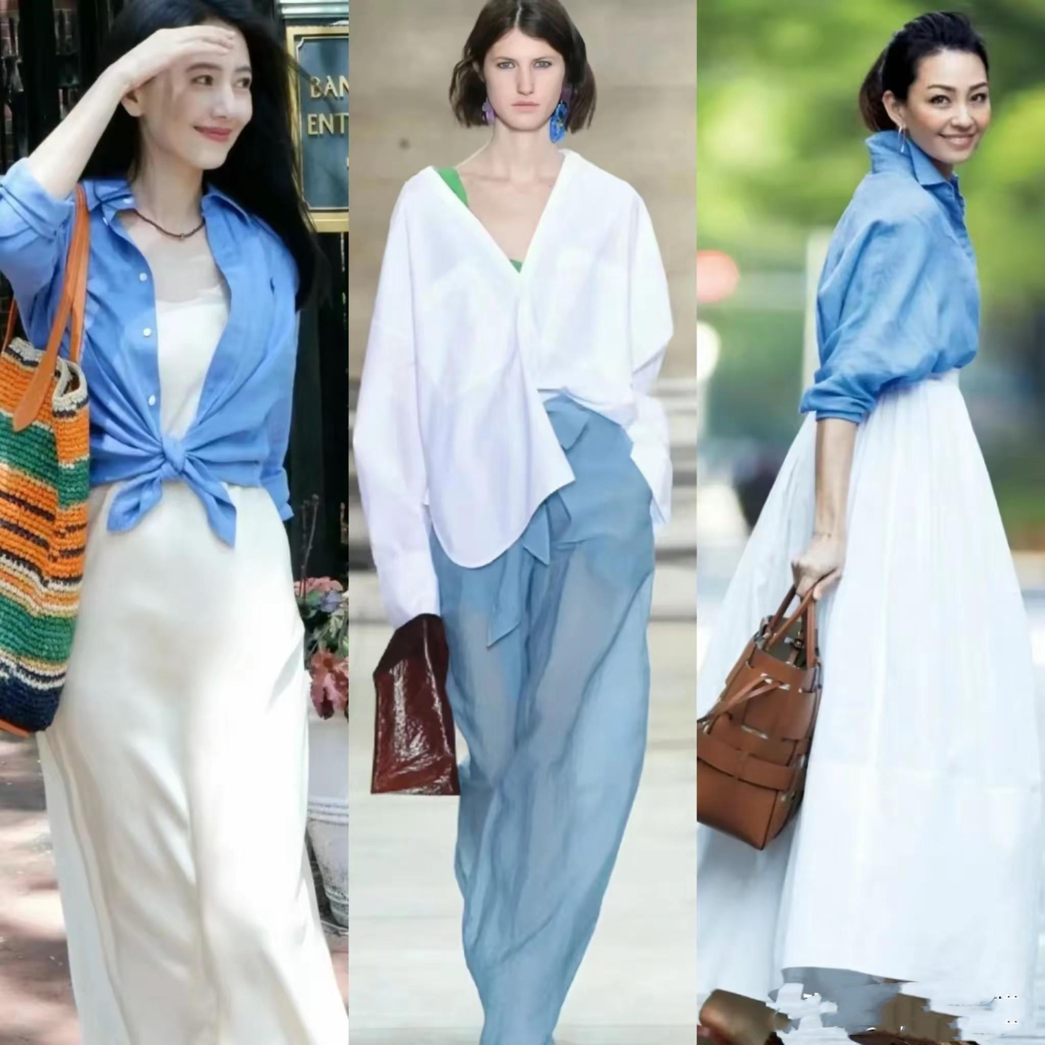藍色系與白色系,都是非常乾淨又顯白的顏色。這兩種顏色不僅可以拆分來穿,還可以直接選擇藍白配。