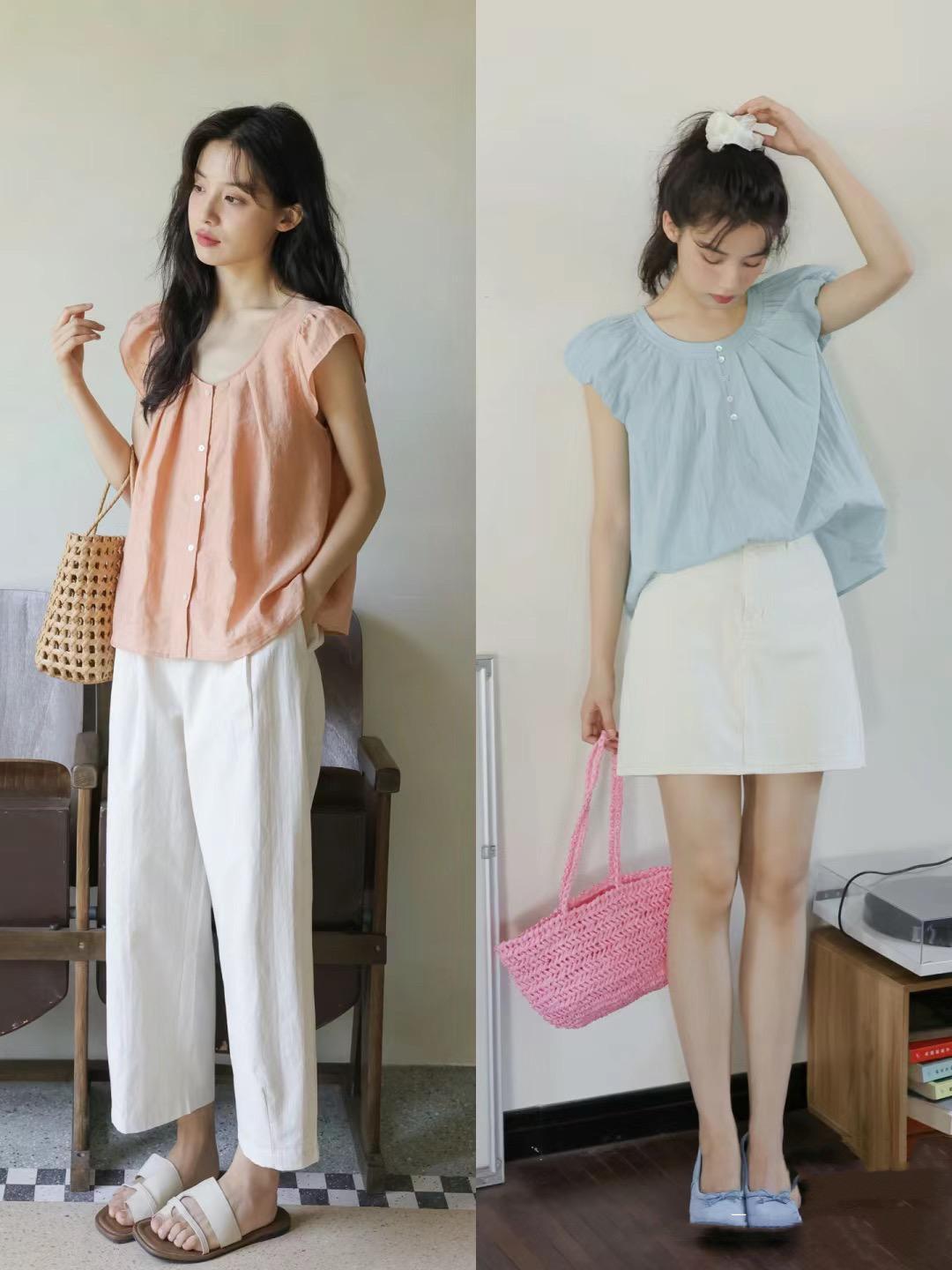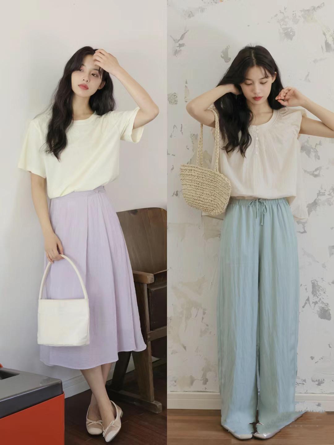 比如寬鬆一點的小飛袖T恤、或者寬鬆T恤,都可以配山本褲、半身裙來穿着。這個夏天的山本褲,舒適透氣、還遮肉,真的是很好穿。