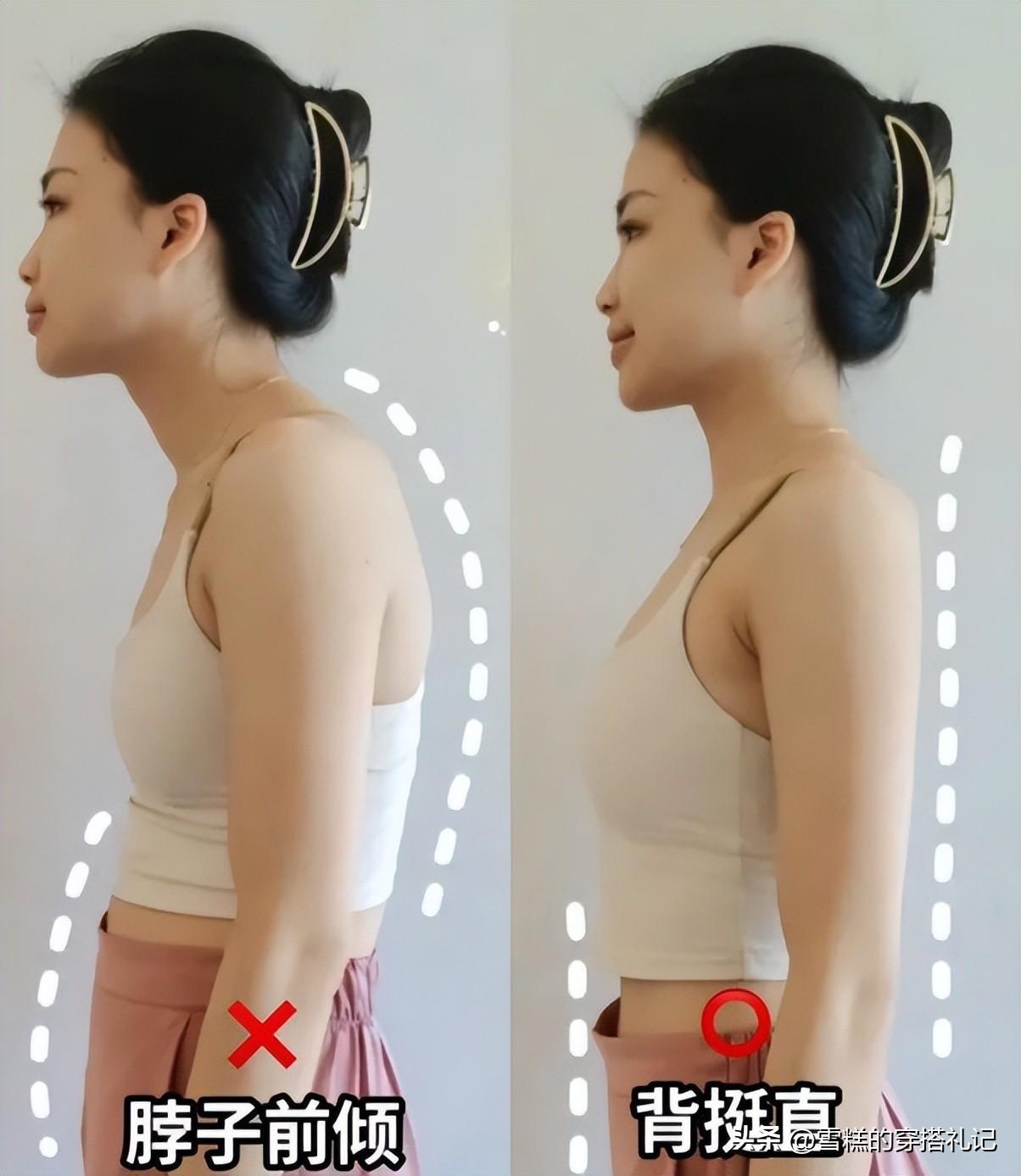 含胸駝背也是很多女生存在的體態大問題,特別是胸大的女生,往往會有一種身材的羞恥感,習慣性的含胸駝背,不僅讓你穿衣服很沒有氣質,儀態也會大打折扣。下意識的抬頭挺胸保護的,不僅是你的骨頭和脊椎的健康,同時也可以讓你無論走路還是站姿都顯得優雅大氣。