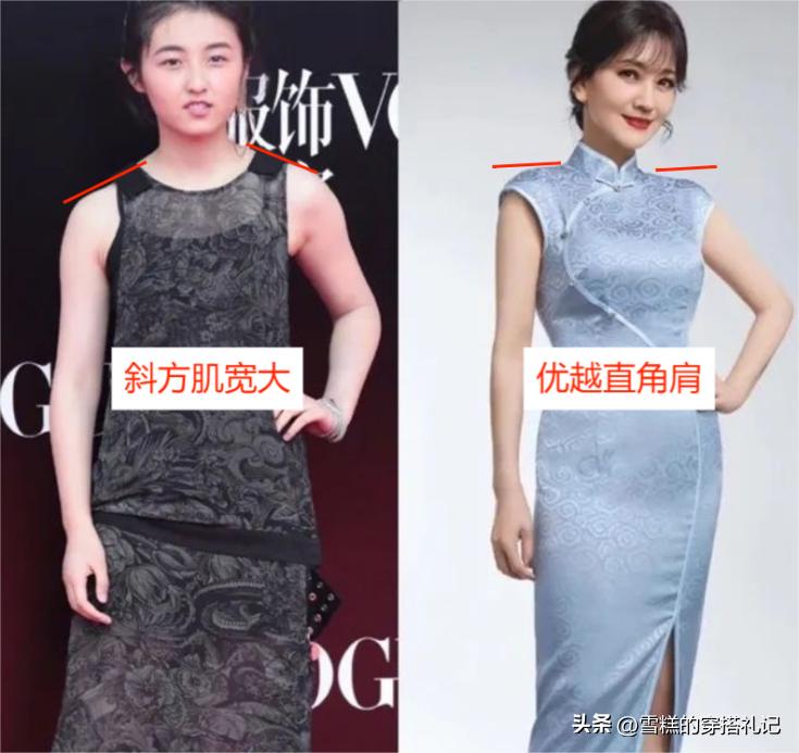 對比圖一:寬大的斜方肌VS服帖的側頸線條