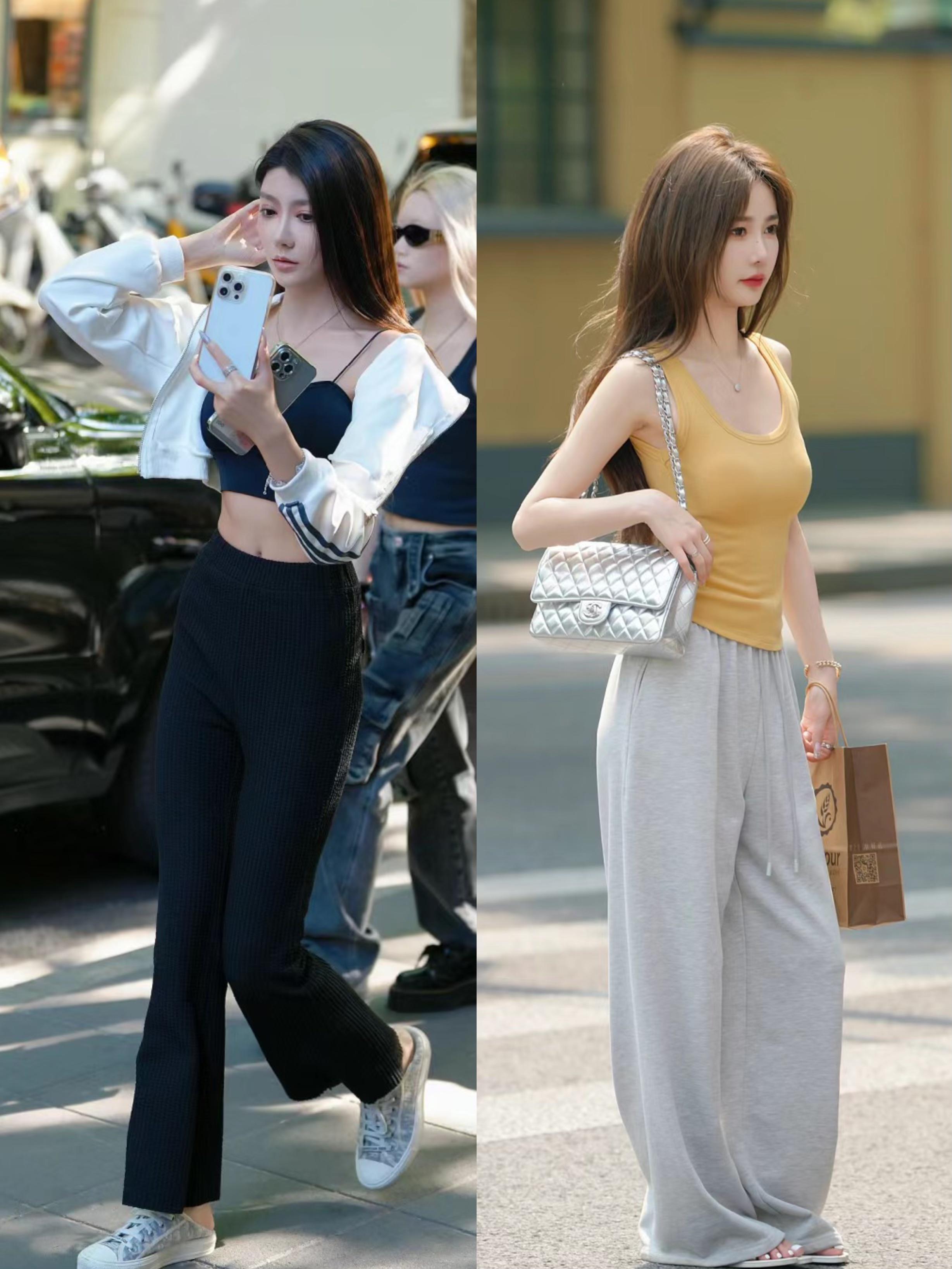 性感一點的小背心,更適合搭配基礎款的長褲。不管是白色的西裝闊腿褲、還是休閒風的束腳運動褲,穿起來都更加的利落減齡。