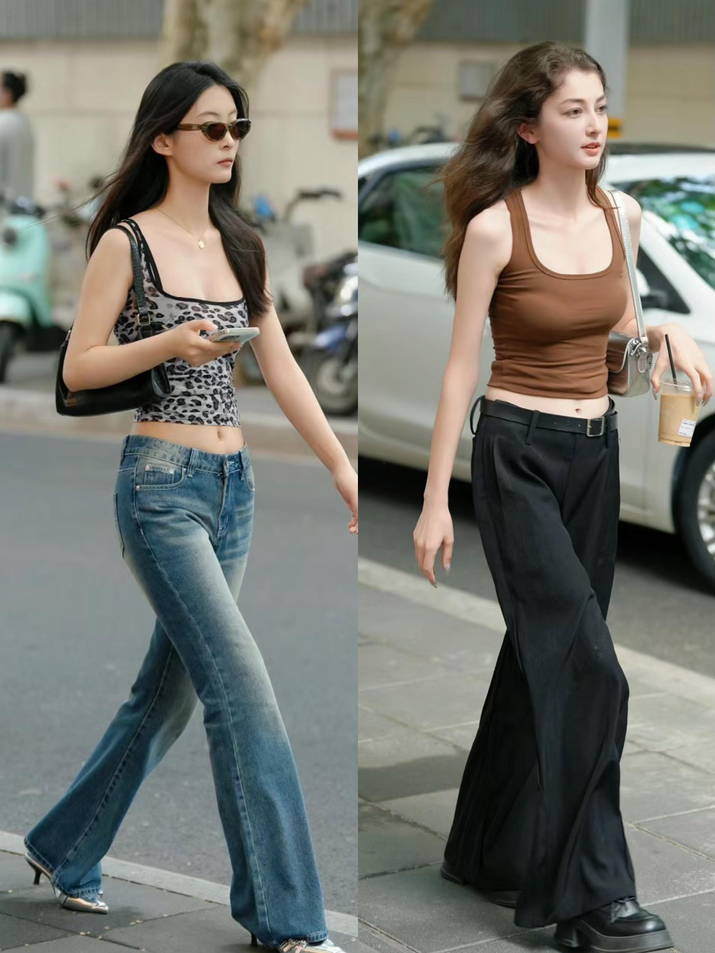 像這種熱辣的小背心,不管是大領口、還是小領口,細肩帶、還是寬肩帶,修身款還是緊身款,穿起來都非常的自由,搭配上毫不費力。