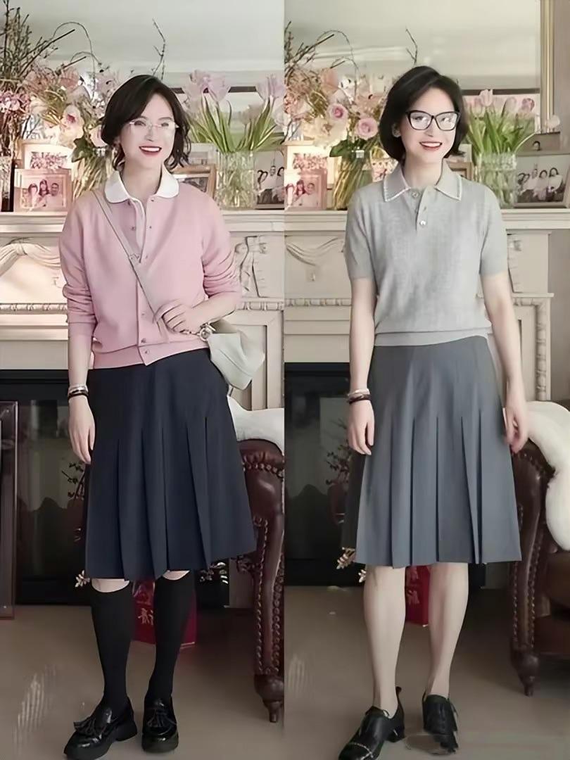 用polo衫來搭配半身裙,有一種更減齡的效果。淺色系的polo衫穿起來顯白又襯膚色。搭配大裙襬的半身裙,有一種更洋氣、大方的美。