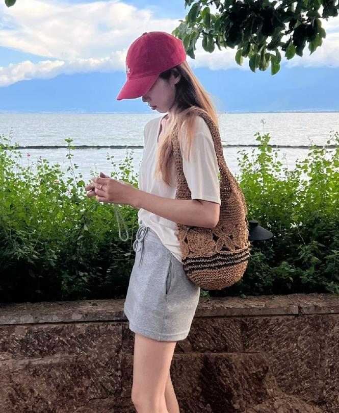 乾淨基礎的白色t恤,真的非常百搭耐看,加上寬鬆的版型,最藏肉顯瘦了,選擇一條灰色運動半裙,利用起一頂彩色棒球帽點綴,青春洋氣又充滿活力。