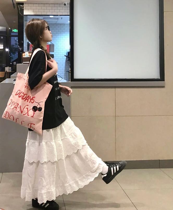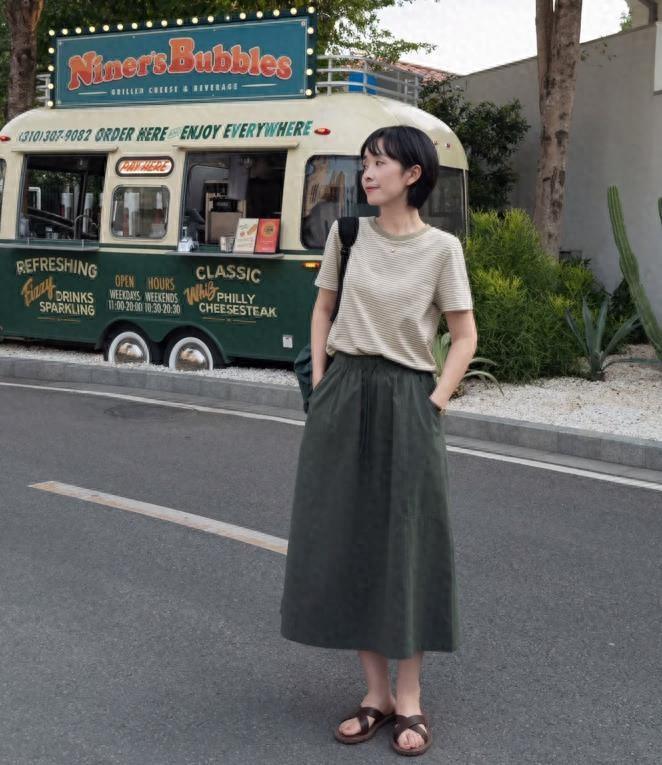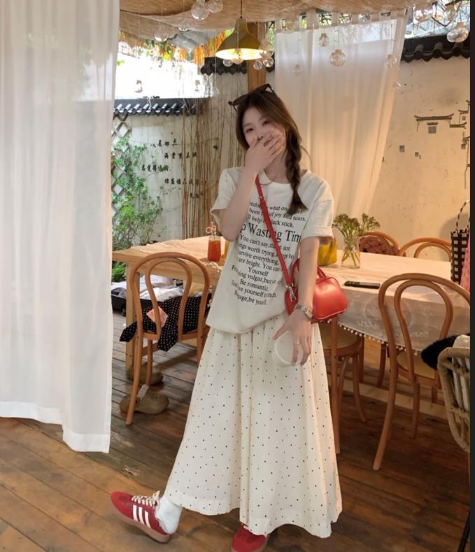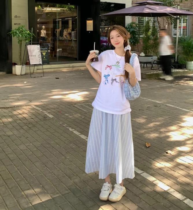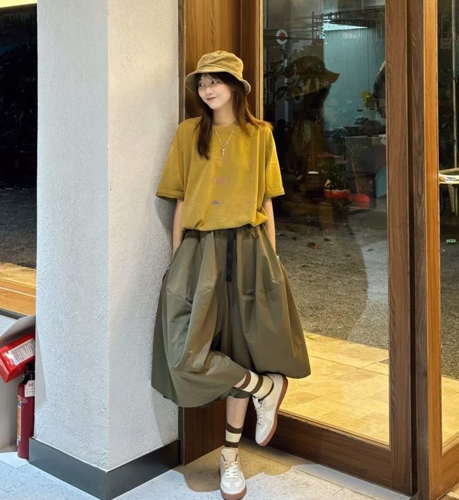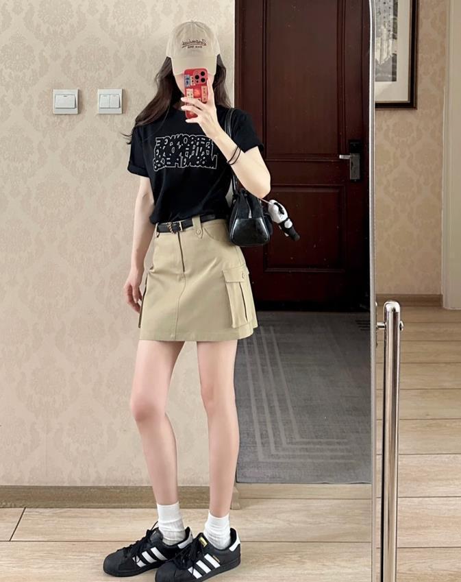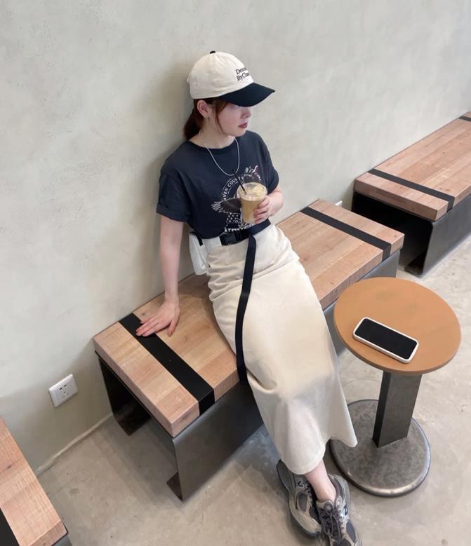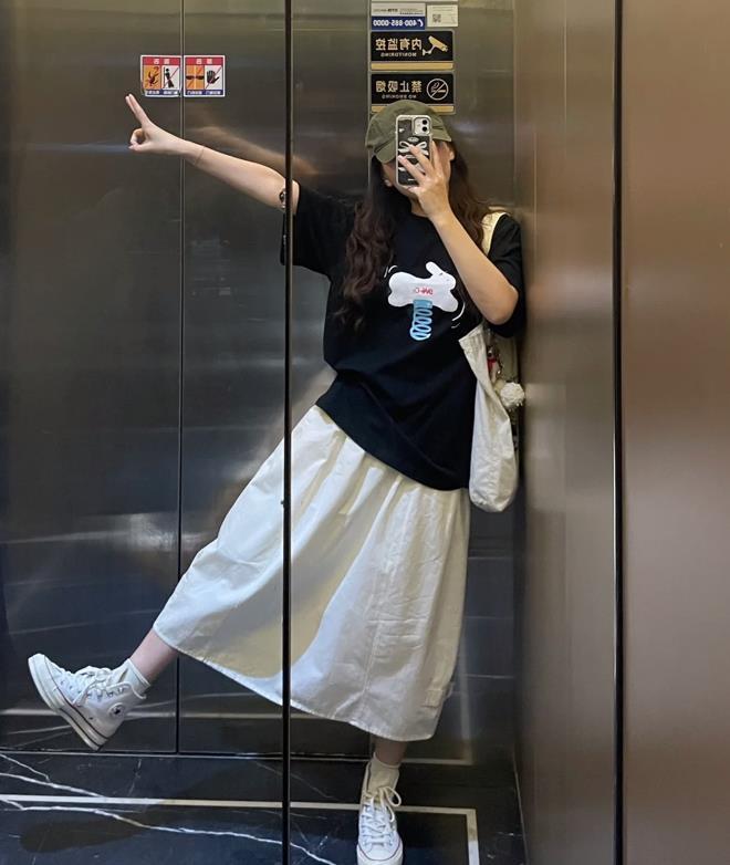 除了要選對t恤之外,半裙的款式和顏色選擇也相當重要,特別是裙子的版型,根據自己的實際身材選擇纔好看。只要你選對合適自己的裙子版型,不管是什麼款式,都可以與t恤完美搭配一起。