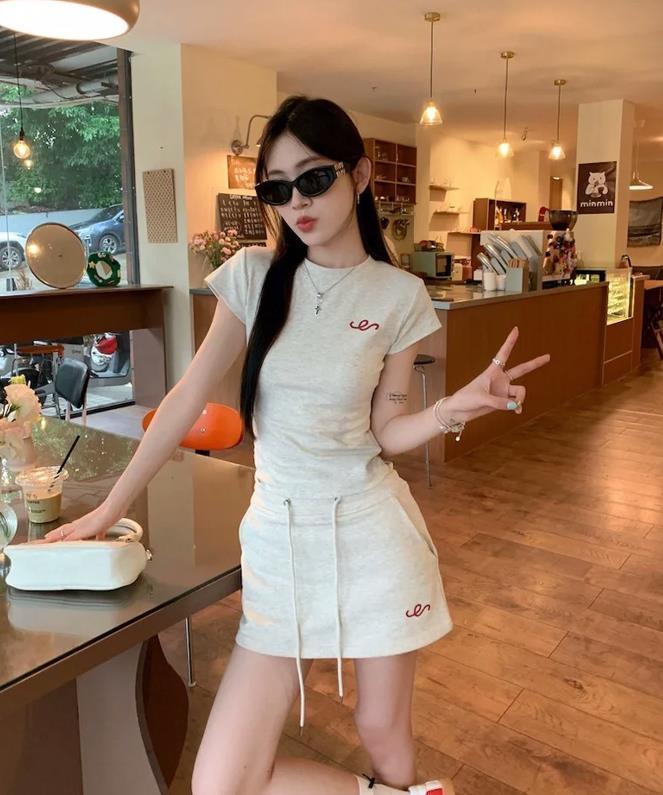 夏天這麼穿也太絕了吧?有種辣妹風的既視感,一整套都是休閒的運動套裝,很顯瘦時髦,刺繡正肩短袖t恤,搭配抽繩a字運動半裙,可以根據自己身材進行調整,一整體組合在一起,是今年流行的那種甜辣風,好喜歡啊。