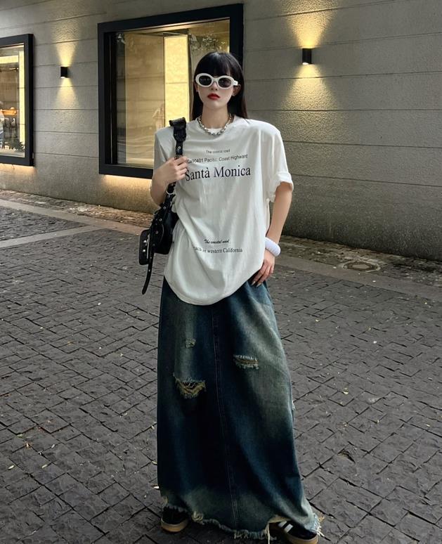 T恤和牛仔半裙的搭配,適合各種場合,無論是逛街約會,還是日常上班,這樣的穿搭都能讓你輕鬆應對。既沒有過於顯正式,又沒有太隨意,恰到好處就可以展現出你的個人魅力。