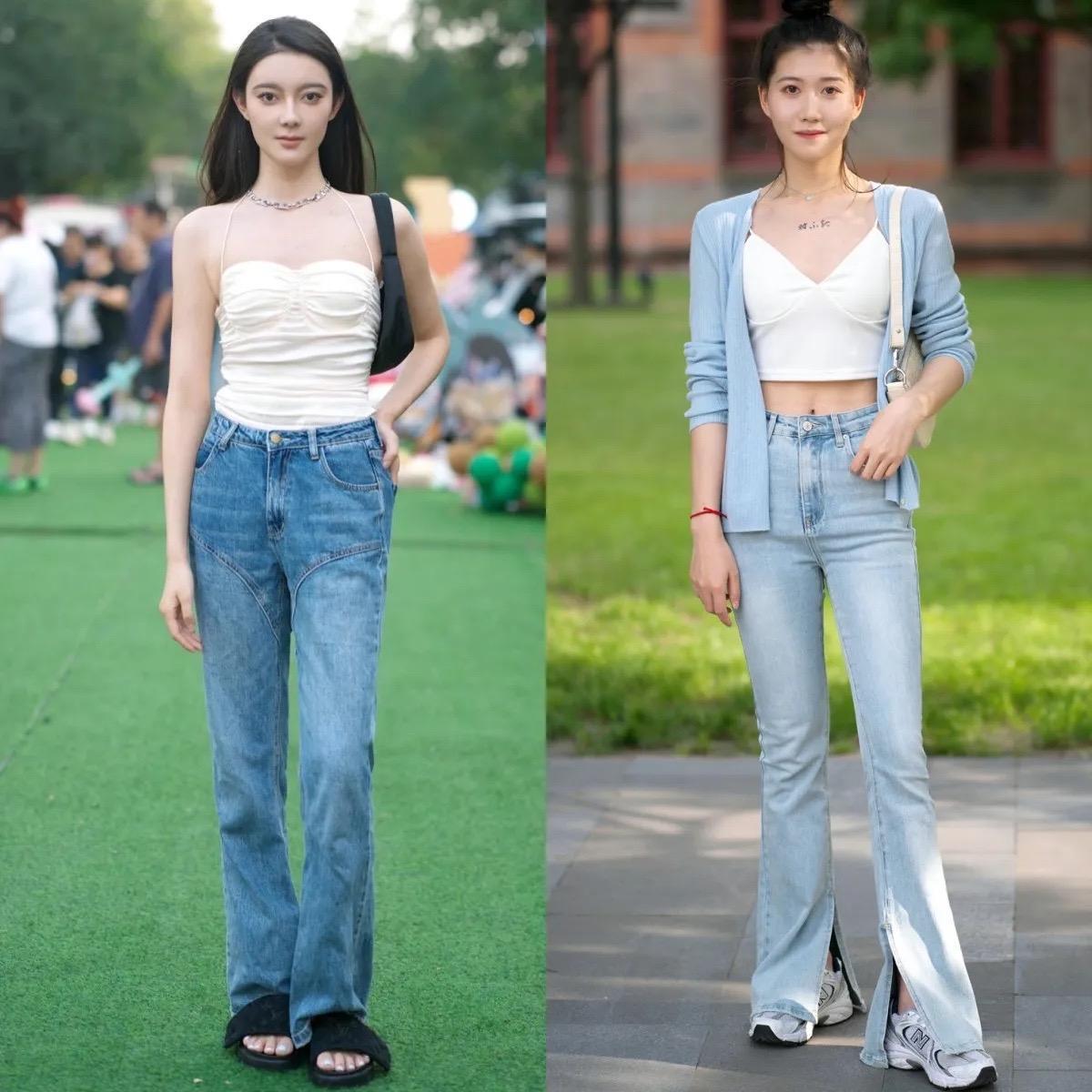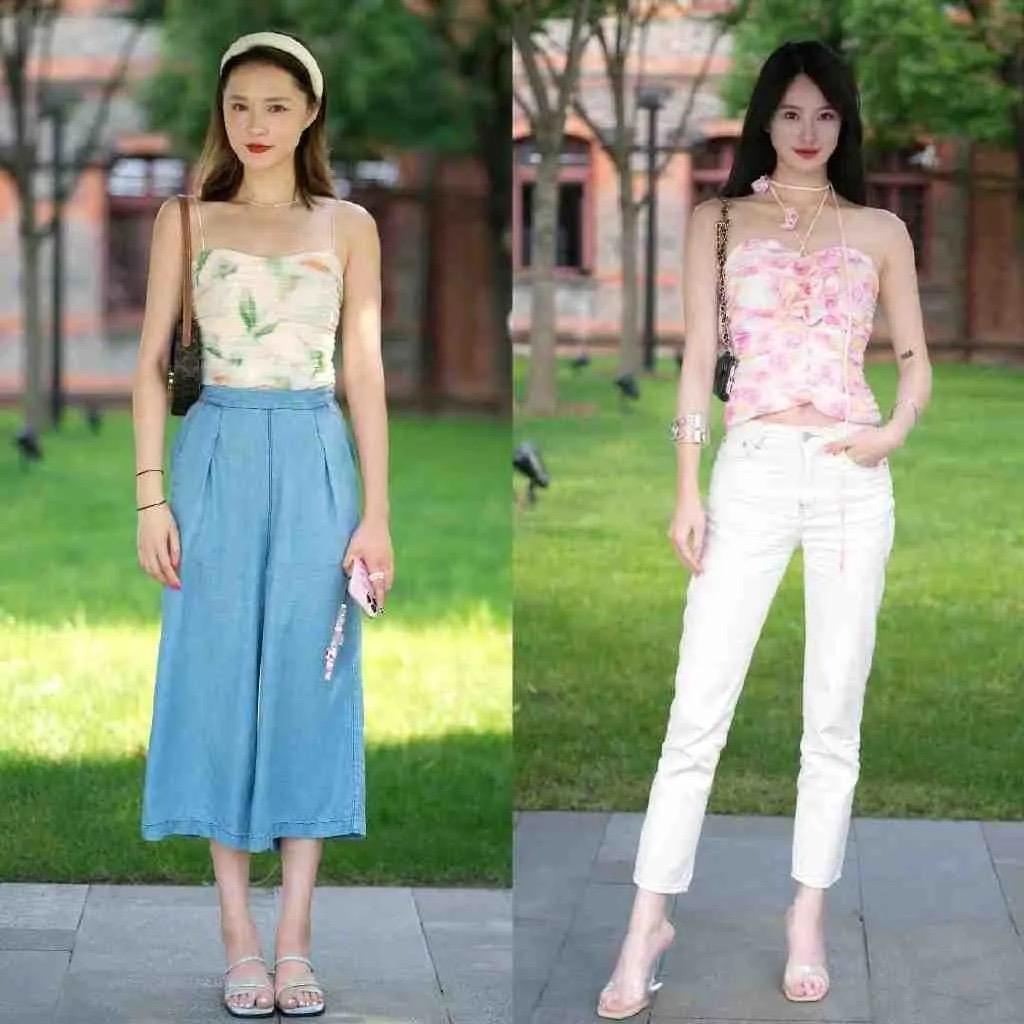 尤其是白色系的吊帶背心、或者抹胸背心,都屬於純色擠奶衫的一種。這種白色小背心,直接搭配高腰的藍色牛仔褲,就非常的清爽時尚。