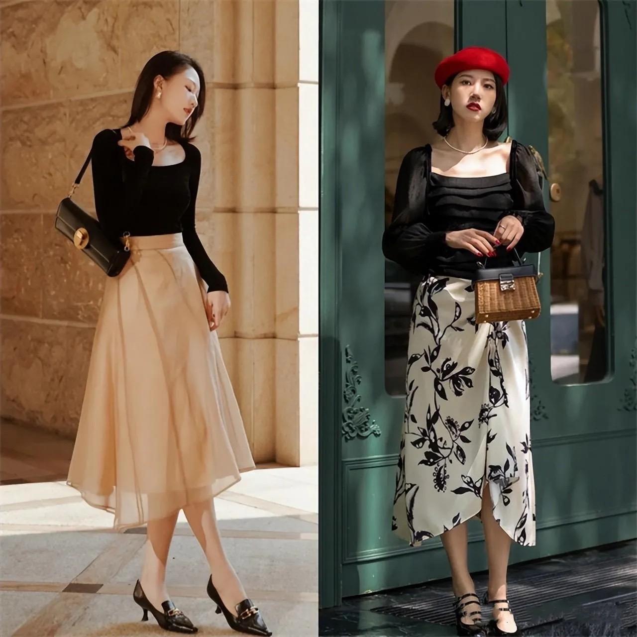 以方圓領+小收腰+短款版型爲主要特點,法式擠奶衫更加精緻考究。對於上半身線條的修飾性也更強,優雅還顯瘦。