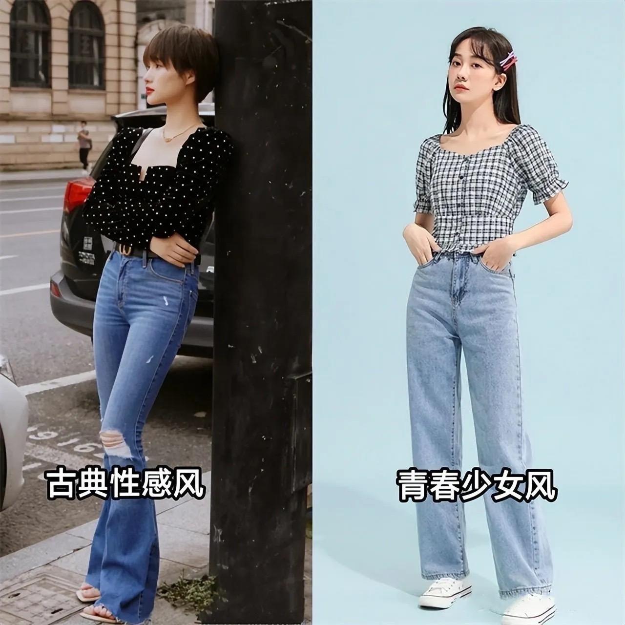 用方領衫配淺藍色牛仔褲,就是青春洋溢的少女風。用方領衫搭配深藍色牛仔褲,就是古典性感的高級風,風格屬性多變、時髦又耐看。