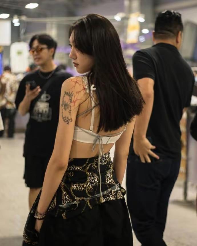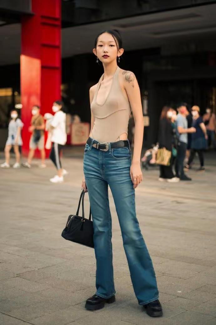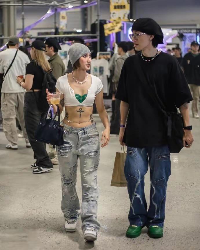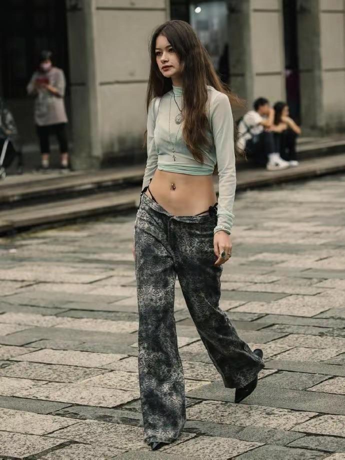 上身露肚臍、下身露內褲,看似一種浮誇、大膽的穿着方式,實則是一種時尚的表達方式,她們敢穿、會穿,不愧是時尚的弄潮兒。