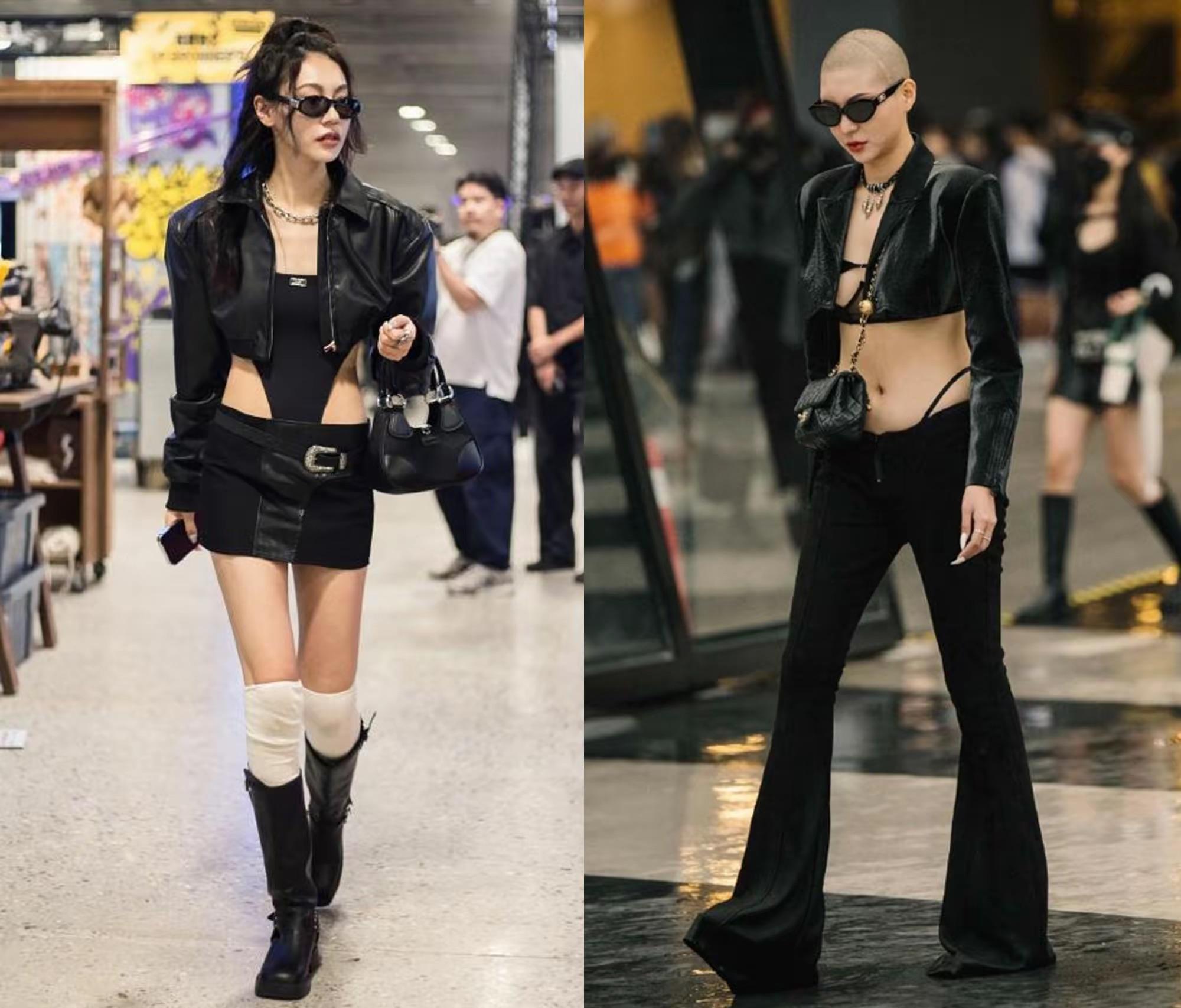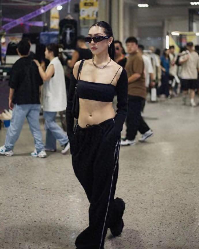 一身黑色怎麼穿不沉悶?看臺灣女孩的穿搭就明白。以細吊帶背心+低腰露胯褲表現出二八分的比例,腰細腿長、熱辣又酷颯。