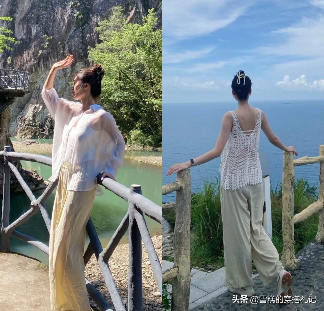 ▼抓住雪紡面料的優質感,直筒褲更喫香