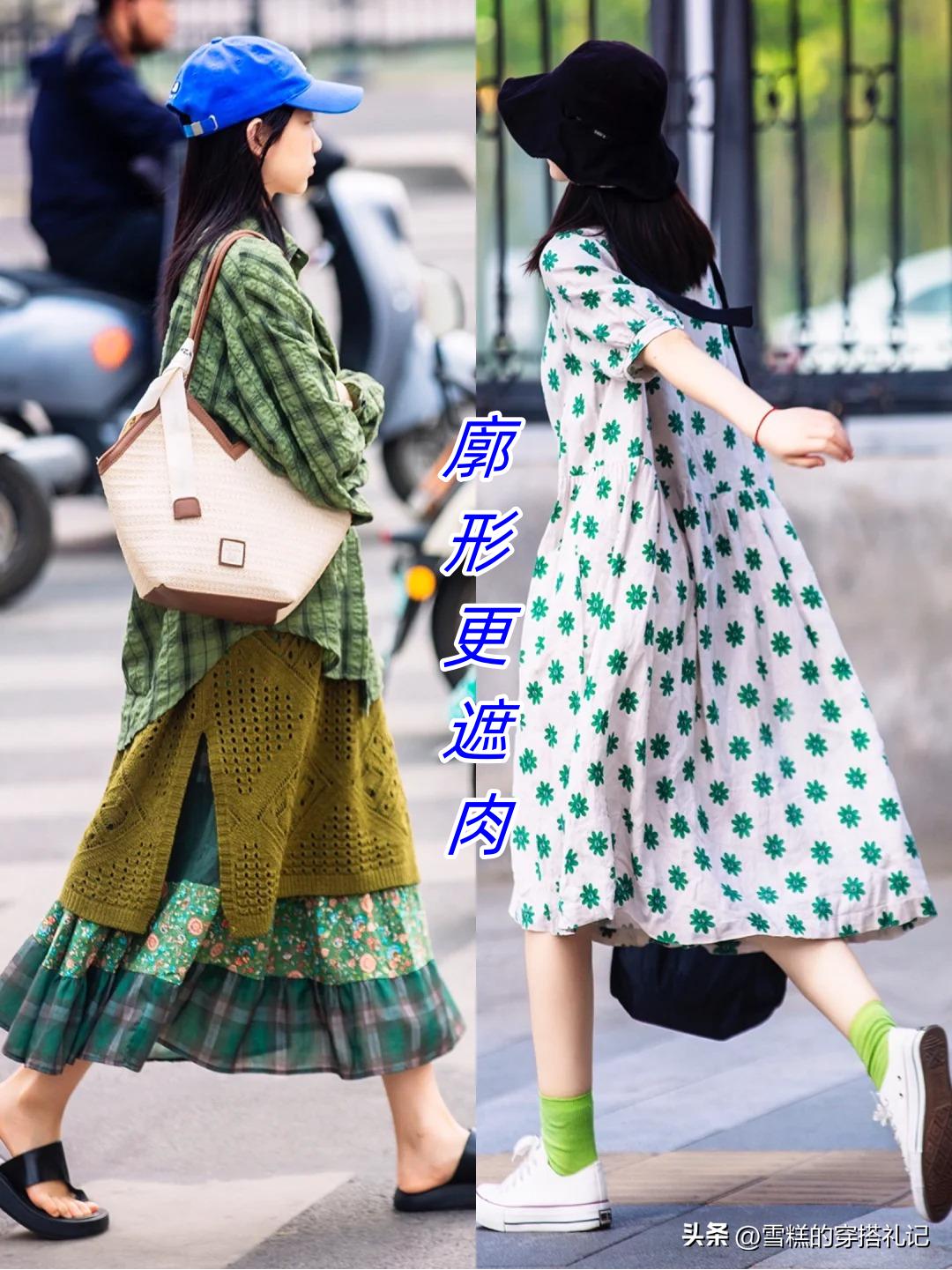 ⑶長裙長褲優選大輪廓增加身材遮蔽感,偏胖女生也穿搭得體