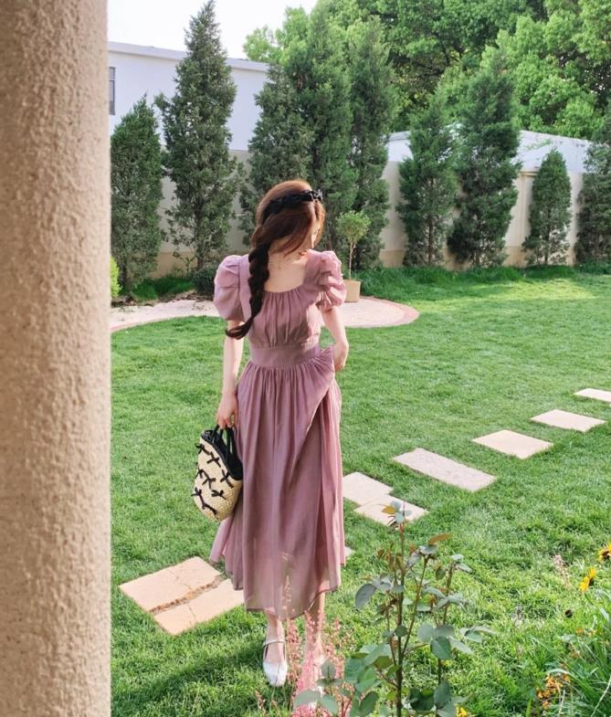 很適合夏日裏穿的一個水晶葡萄紫色,這個色調看起來就是很顯白啊,收腰設計的版型,可以把身材比例修飾得很完美,也顯瘦。雪紡材質,帶着輕盈和飄逸感,不管是約會,還是逛街,都高回頭率。