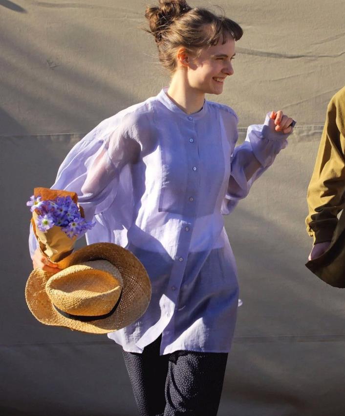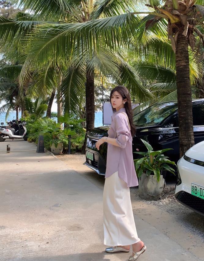 到了假期,就要好好去玩耍一會,去度假遊玩的時候,給自己準備這麼一件襯衫吧,低飽和度的紫色,把膚色襯托得很白皙。