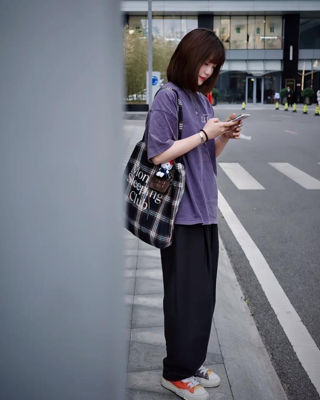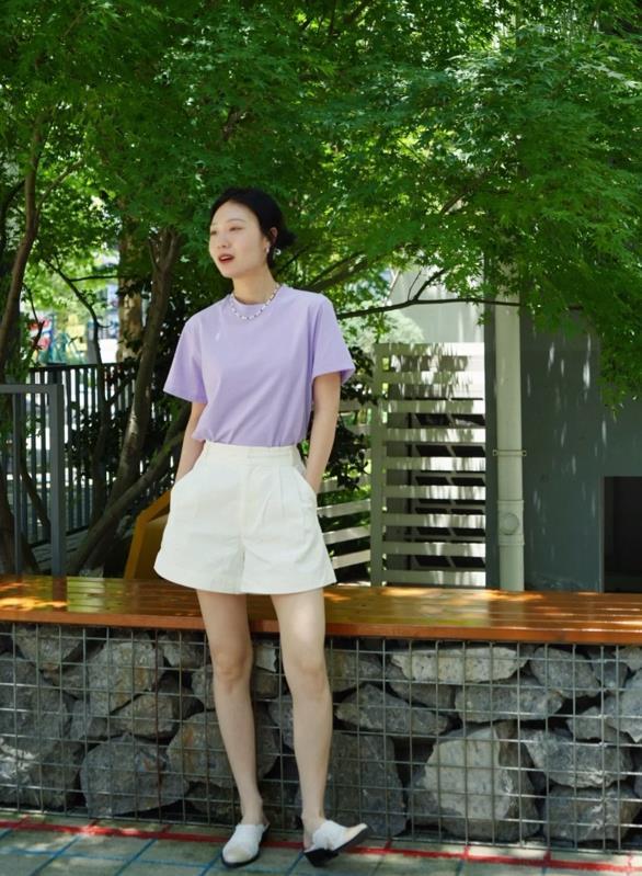 真的完全抵抗不了一點這種低飽和度的紫色,太顯白了,哪怕是這種基礎簡約款,也能輕鬆打造出時髦感。結合一條白色休閒短褲,紫色+白色的配色,看着就莫名顯高級。