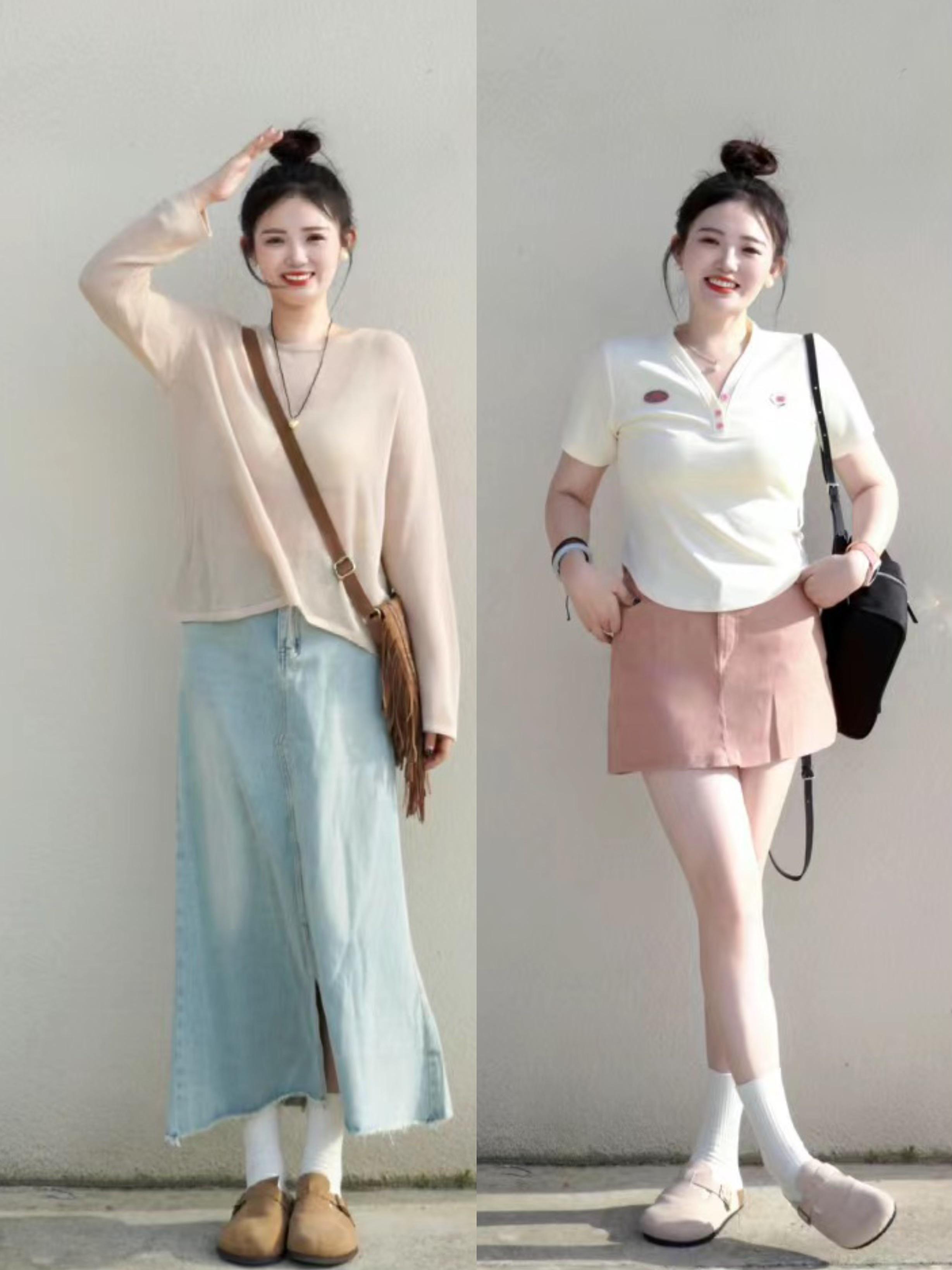 不規則T恤+高腰半身裙