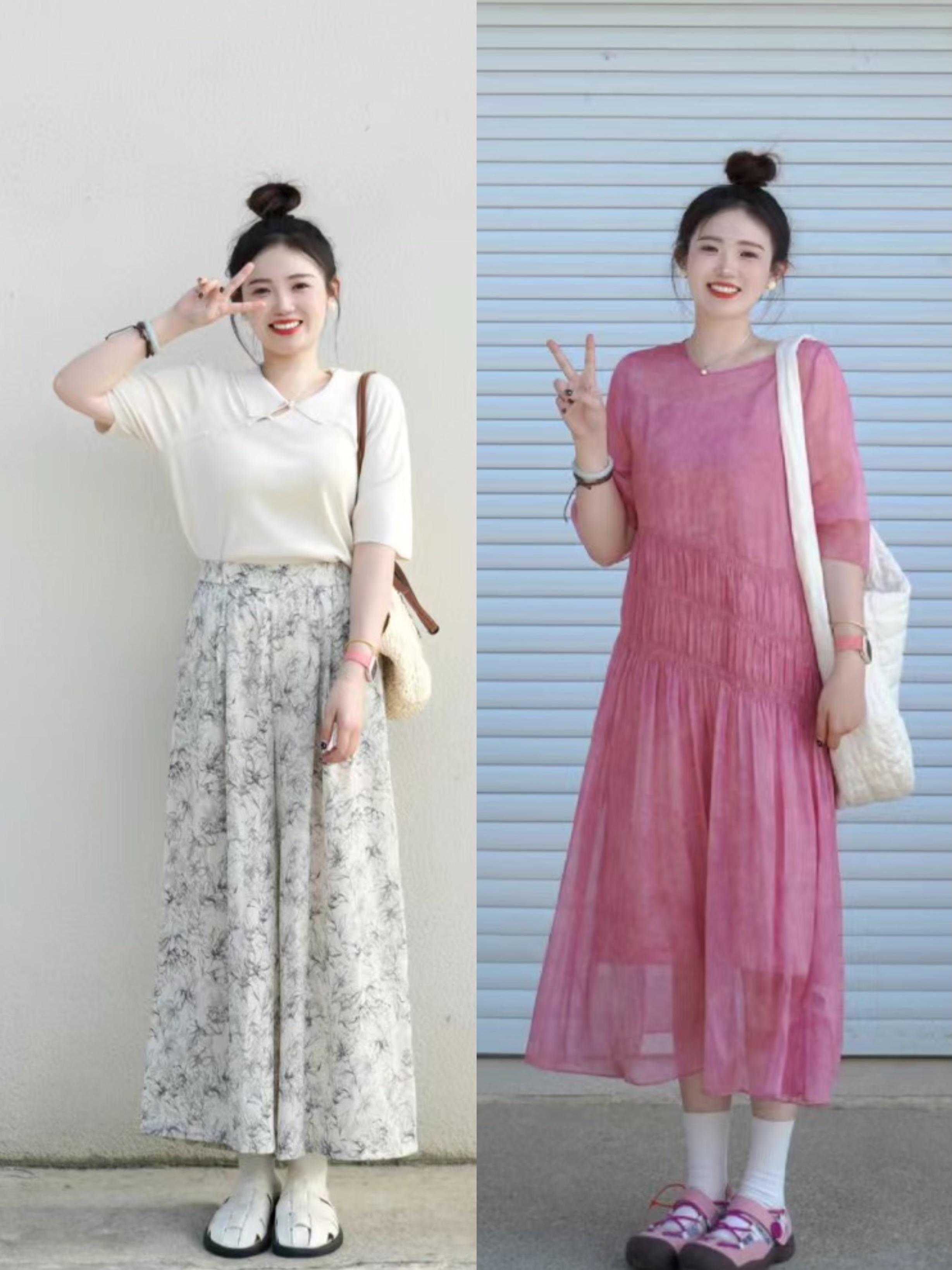 以低調柔和的款式、清新自然的畫面,表現着更時尚大氣的美好。看這位博主的穿搭,完美掩蓋了身體的滾圓與厚重,適當的露膚、還彰顯着輕盈美。