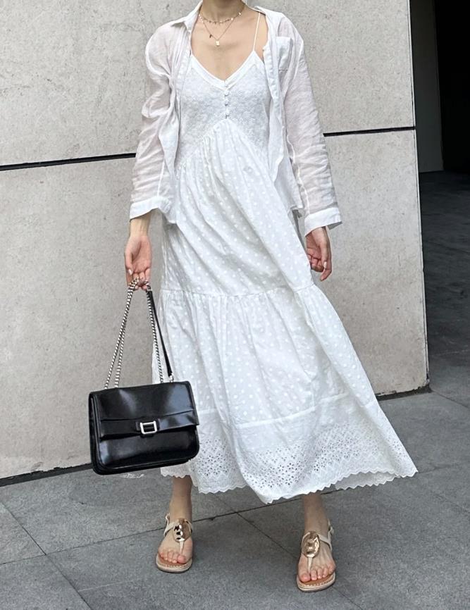這麼一條白月光連衣裙,穿起來實在是太美了,不管是度假,還是約會都很好看的一條裙子,波西米亞風情款式,加上寬鬆的裙身,一整個被溫柔住了,搭配起一雙夾趾涼鞋,實在是太清爽涼快了。