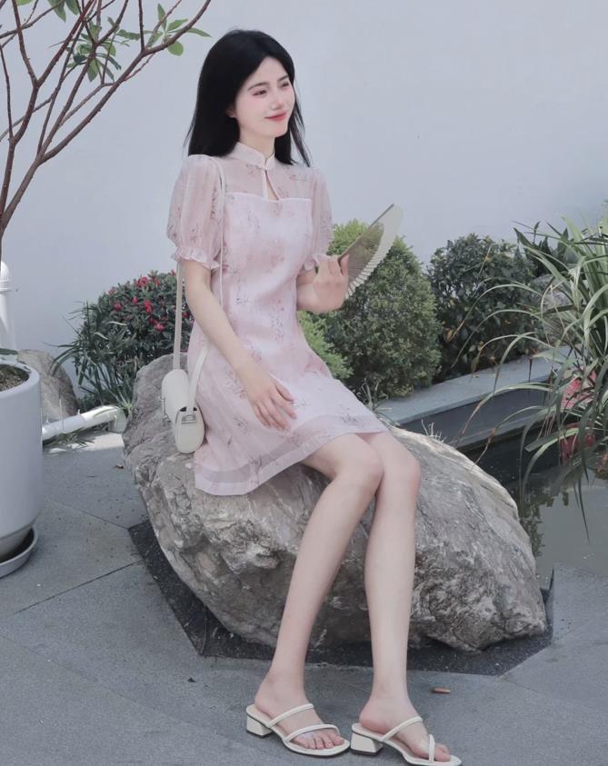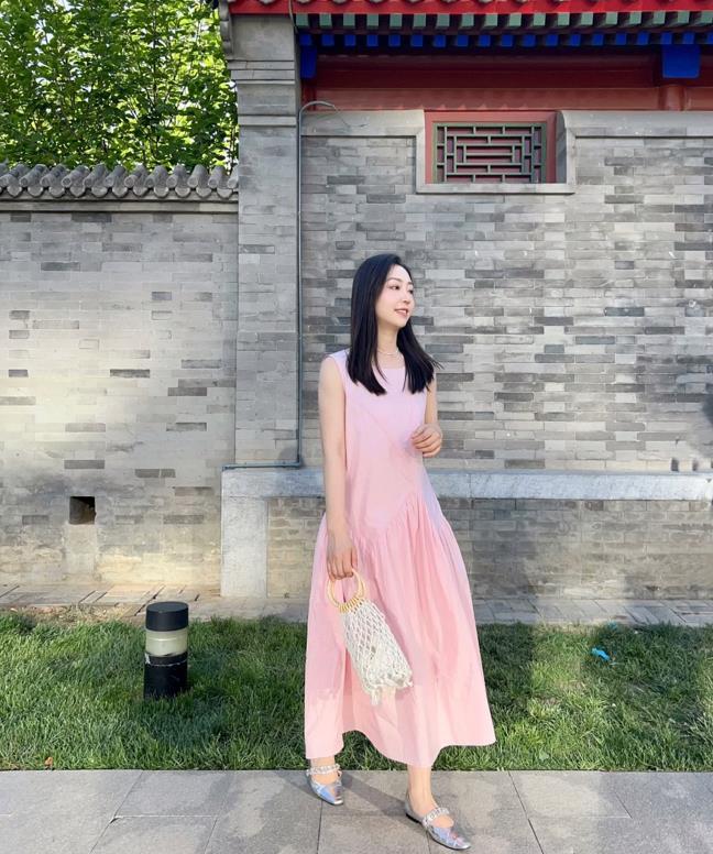 在夏日裏,連衣裙+涼鞋就是一對很經典的組合,溫溫柔柔的新中式風穿搭,淡雅的粉色,沒有想象中的豔俗感,反而帶給人一種甜美與減齡。搭配起一雙小粗跟的涼鞋,清爽涼快又不失氣質感。