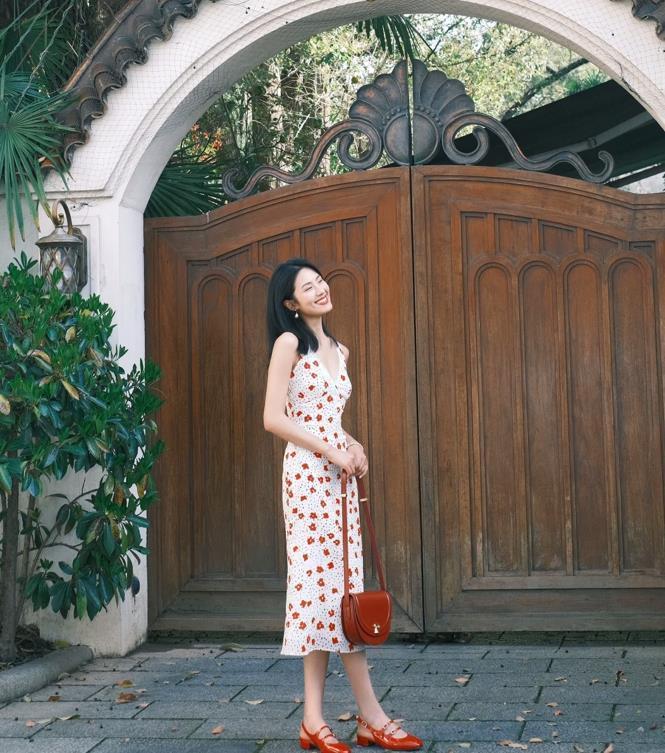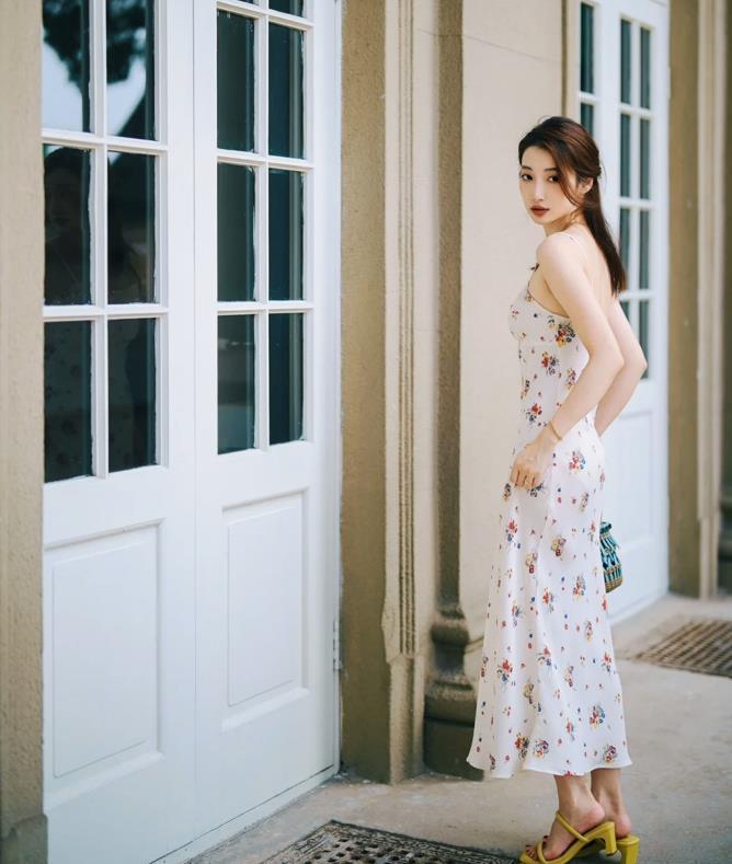 喜歡這種浪漫的碎花吊帶連衣裙,身材比例好的姐妹,說什麼也要去穿起來看看,很是充滿小性感,又帶着清涼的氣息。腳下踩着一雙亮色粗跟涼鞋,輕鬆點亮了整個造型。