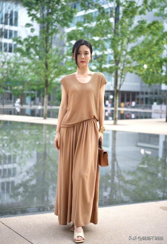 在修飾我們的身材比例時,除了要注意營造長短結合的效果之外。還要注意縱向曲線的打造,面料和版型的選擇是至關重要的。我們可以選擇修身款式的上衣和山本褲形成鬆緊對比的效果,或者選擇垂墜感強的上衣,讓整體造型的線條更加流暢。這些方法,都可以讓我們的造型更具有協調感,視覺效果更加高挑。