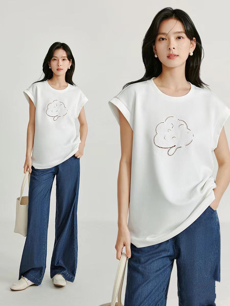 夏天裏的圓領T恤,如何才能穿得不一樣?更輕盈一點的小飛袖T恤,搭配圓領設計,保守卻不單調。