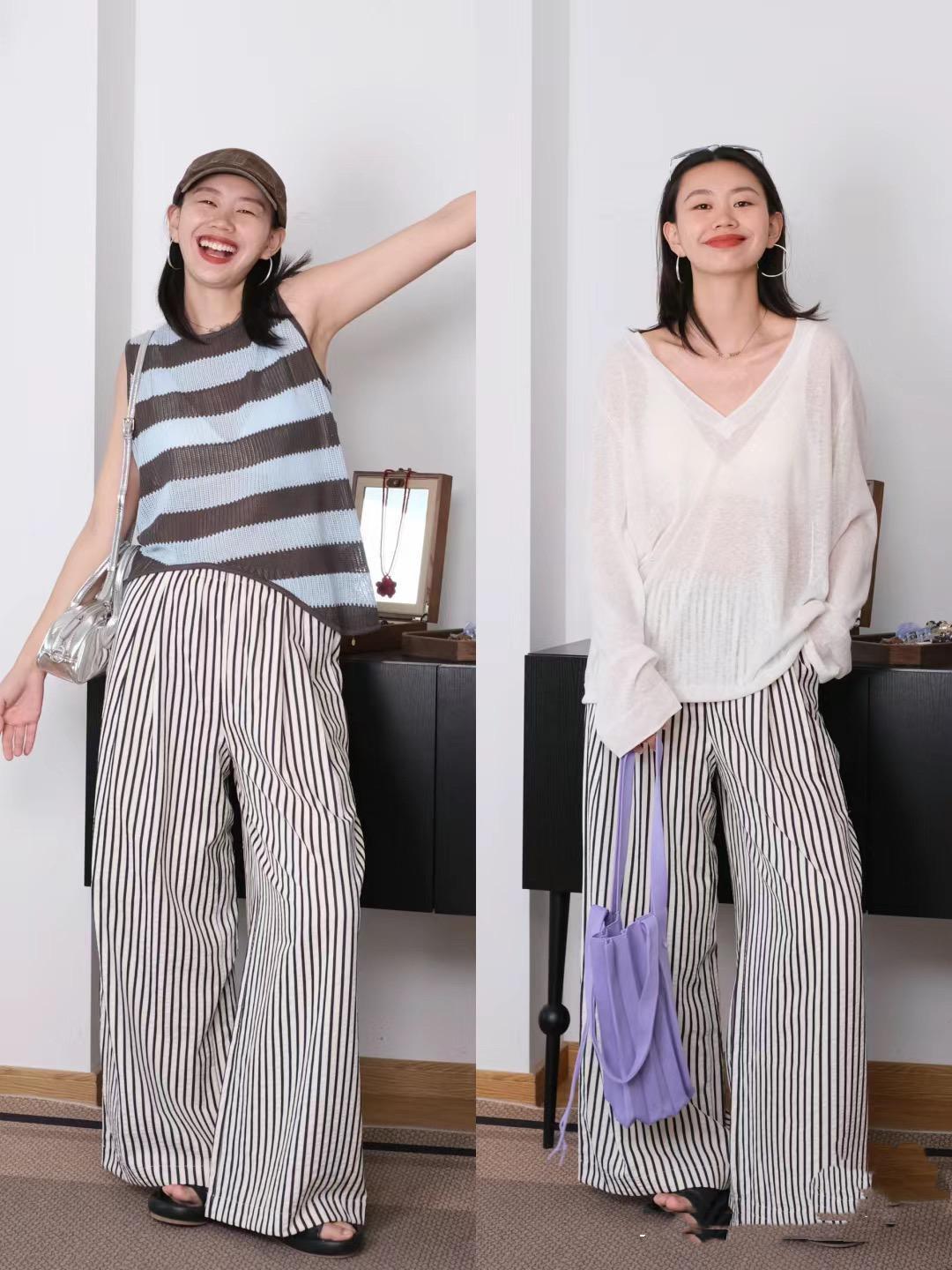 寬鬆罩衫+條紋闊腿褲