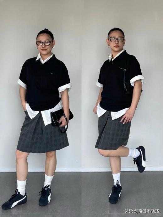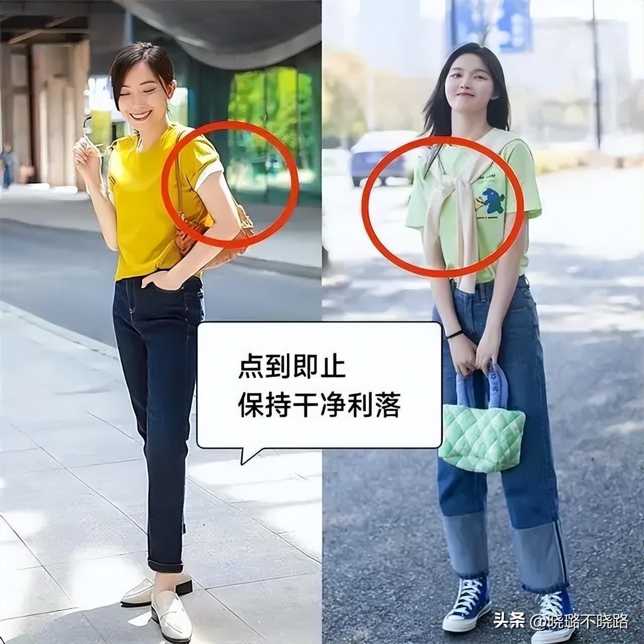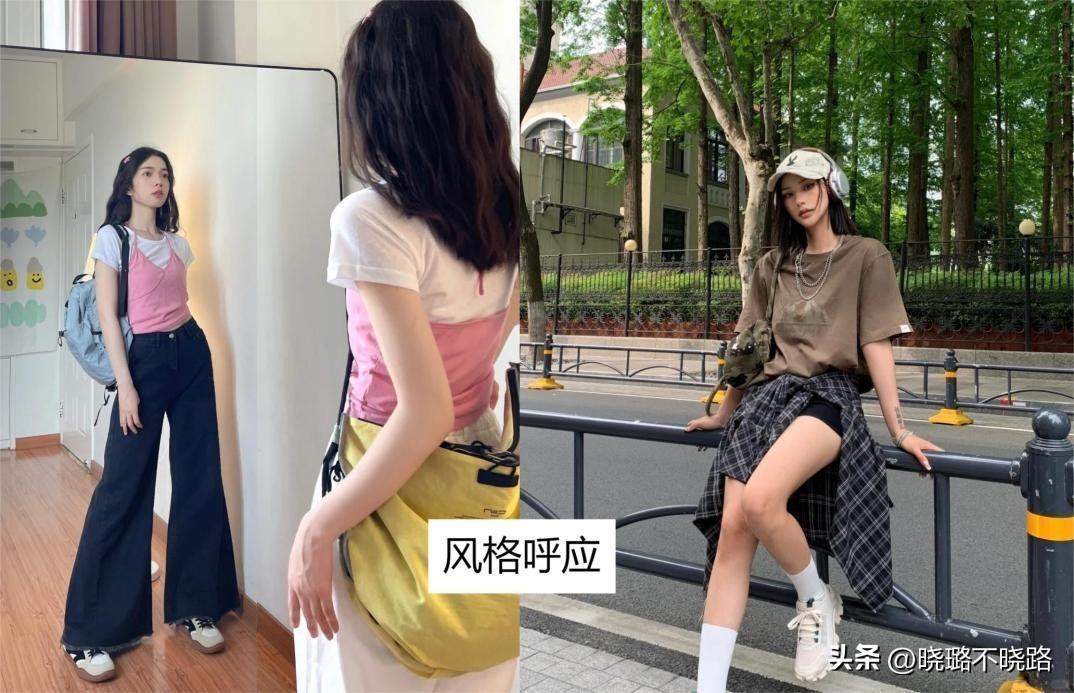 單件的T恤穿搭確實很難出彩,但是如果我們要掌握疊穿的技巧,首先需要明確,我們的疊穿設計一定是需要放在上半身的。穿在上半身,一方面是不會擔心顯胖,另一方面是抬升我們的視覺焦點,能夠更好的去拉扯下半身的長度,幫助你快速的顯高顯瘦。