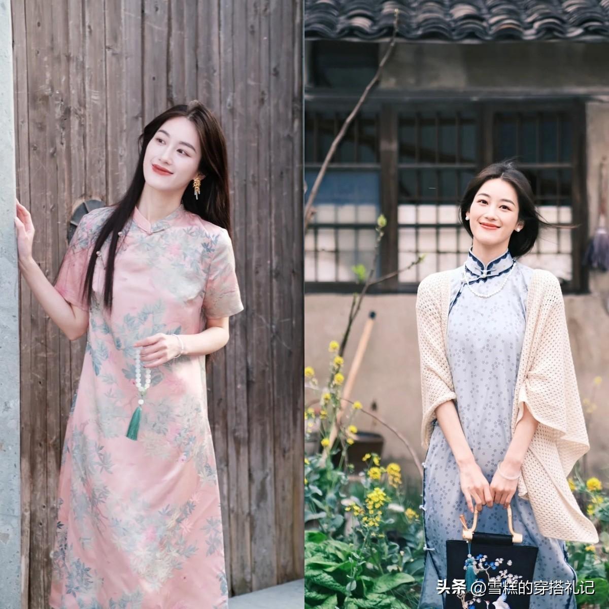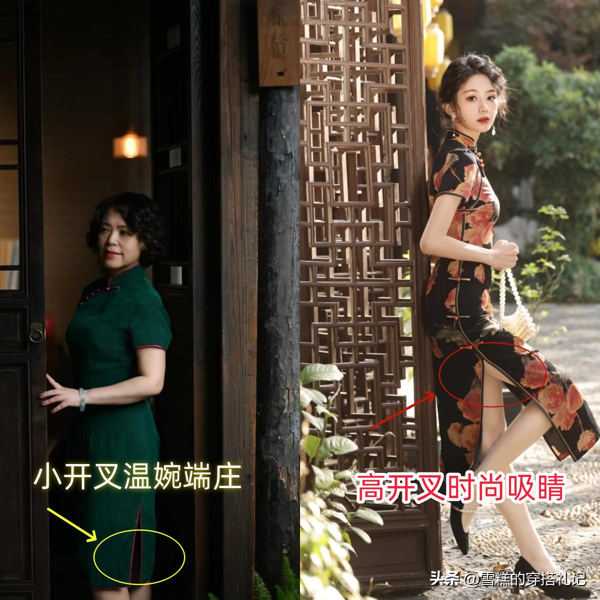 長裙的旗袍穿搭爲什麼不會顯得累贅呢?那就是因爲旗袍會自帶一種下襬開叉的款型設計,無論是側面開叉還是背面開叉,都可以增加我們腿部皮膚的露出佔比,這樣穿搭就會比較清爽,長裙搭配不會累贅。