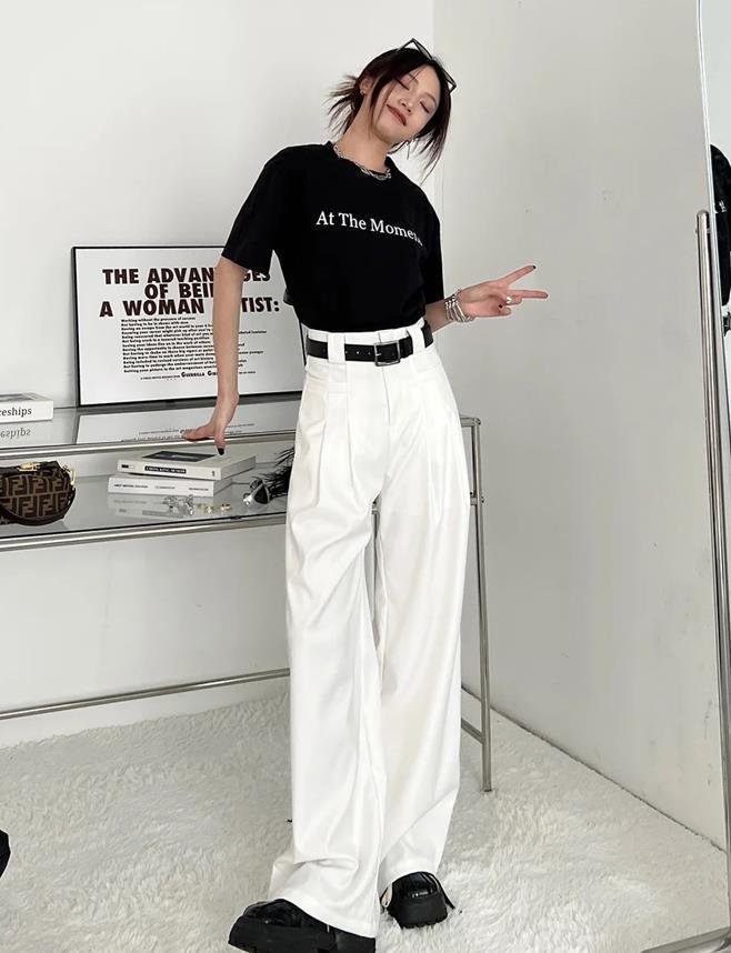 經典的黑白配穿搭,是真的永遠不會出錯呢,白色西裝闊腿長褲,不用擔心穿這個顏色會顯胖,完全沒有這個問題。反而是很顯瘦和拉腿,特別是增加了腰帶進行點綴後,不僅提高腰線比例,還顯高挑。